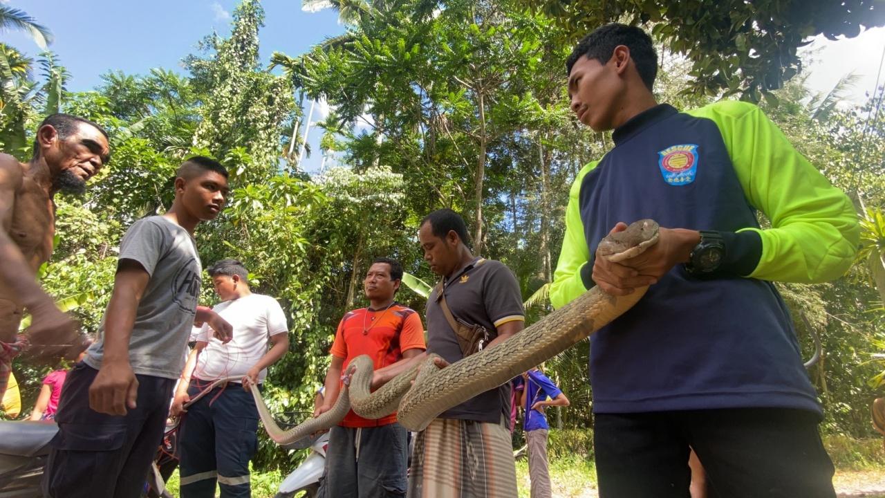 สภาพอากาศร้อนจัดในพื้นที่ อ.กงหรา จ.พัทลุง ทำให้ งูจงอางเพศผู้ ตัวใหญ่ยาวเกือบ 4 เมตร น้ำหนักเกือบ 8 กิโลกรัม เข้าไปซุกในห้องครัวของชาวบ้าน ร้องกู้ภัยฯ ช่วยจับไปปล่อยคืนป่า