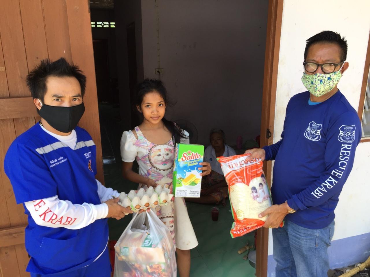 โดยก่อนนี้รับแจ้งจากชาวบ้านว่า ครอบครัวของนางรัตนา กำลังเดือดร้อนอย่างหนักจากสถานการณ์ไวรัสโควิด-19 เนื่องจากลูกชายนางรัตนา ซึ่งเคยเป็นเสาหลักของบ้าน ทำงานรับจ้างหาเงินเลี้ยงแม่และลูกอีก 2 คน ต้องหยุดงานเพราะวิกฤติโรคโควิด-19 ระบาด ทำให้ทั้งครอบครัวไม่มีข้าวจะกิน และไม่ได้รับการช่วยเหลือจากหน่วยงานในท้องถิ่น เนื่องจากเป็นคนที่ไม่มีทะเบียนบ้านอยู่ในพื้นที่ดังกล่าว ทำให้หน่วยงานรัฐในพื้นที่ไม่สามารถช่วยเหลือได้ เพราะขัดกับระเบียบของกระทรวงมหาดไทย ผู้สื่อข่าวจึงประสานไปยังมูลนิธิกระบี่พิทักษ์ประชา เพื่อขอความช่วยเหลือ จนท.กู้ภัยของมูลนิธิ จึงนำข้าวสาร อาหารแห้ง ไข่ไก่สด พร้อมด้วยขนม มามอบให้กับนางรัตนา พร้อมด้วยเด็กๆ ทั้ง 2 คน ไว้กินประทังชีวิต