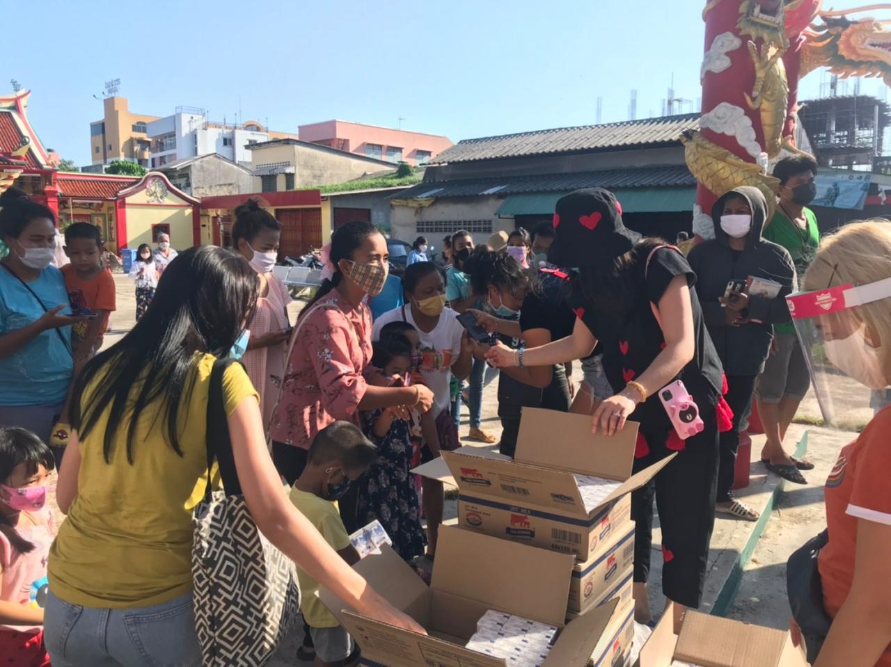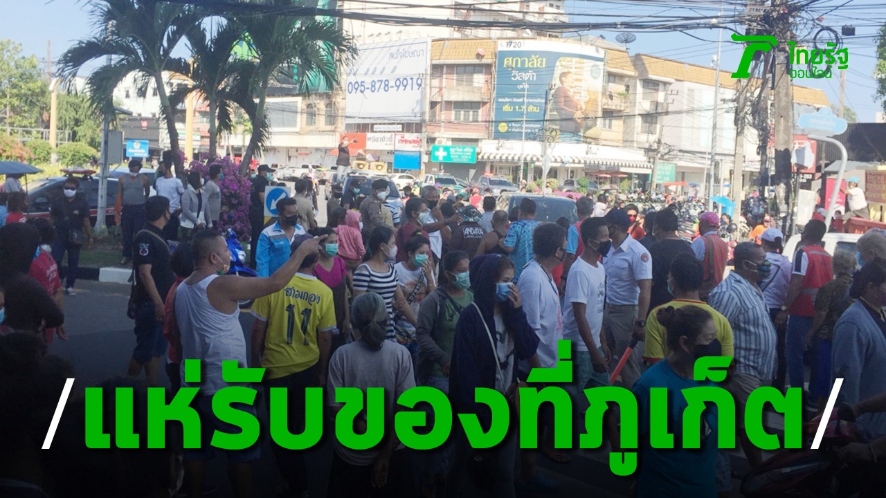 หนุ่มสาววัยรุ่นภูเก็ตรวมเงินซื้อของมาบริจาค ชาวบ้านนับพันชีวิตกลางเมืองที่ประสบวิกฤติโควิด-19 ทำแห่มาขอรับแน่นวงเวียนนาฬิกา ขณะที่ จนท.เร่งจัดระเบียบ เว้นระยะห่าง เพราะยังหวั่นโรคแพร่ระบาด