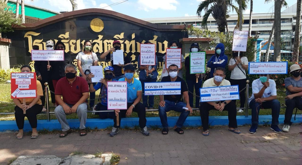 ผู้สื่อข่าวรายงานว่า ตัวแทนผู้ปกครองจำนวนหนึ่งได้ชูป้ายร้องขอความเป็นธรรมที่หน้าโรงเรียนสตรีทุ่งสง มีข้อความว่า "ทวงสัญญาความคืบหน้ายกเลิกทัวร์ญี่ปุ่นของ ร.ร.สตรีทุ่งสง, นักเรียน 37 คน คูณจำนวนเงินรายหัว 44,966 บาท มันหายไปไหนชี้แจงด้วย, ค่าทัวร์ 44,966 บาท คืนเราแค่ 9,000 บาท ขอทราบรายละเอียดค่าใช้จ่ายส่วนต่างแค่นั้นทำได้มั้ย, อย่ารวมหัวกันเอาเปรียบพวกเรา จน-ไร้-จัน-ยา-บัน, COVID-19 ระบาดไปทั่วโลกยังจะไปทัวร์ญี่ปุ่นกันอีกหรือ" เป็นต้น