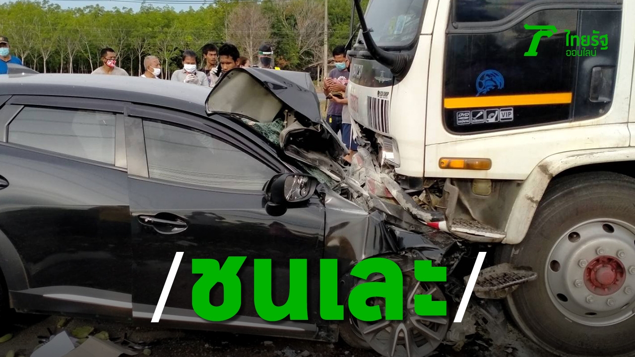 สาวใหญ่ซิ่งเก๋งกลับจากงานเผาศพแม่ที่พัทลุง เพื่อกลับบ้านสมุทรปราการ หลับในรถพุ่งข้ามเลนเกาะกลางถนน ประสานงาบรรทุก 10 ล้อ จอดริมถนน ดับอนาถพร้อมลูกชายวัย 10 ขวบ ส่วนญาติที่นั่งมาด้วยบาดเจ็บ 3 คน