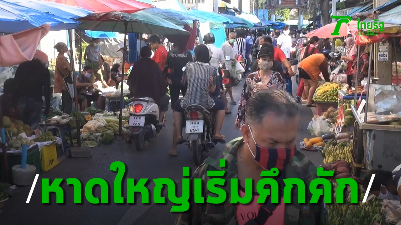 บรรยากาศที่ตลาดหาดใหญ่ จ.สงขลา วันที่สองของการคลายล็อก เริ่มคึกคักตั้งแต่เช้า ประชาชนออกมาจับจ่ายตลาด พ่อค้าแม่ค้ากลับมาเปิดแผง ขณะที่ร้านอาหารเช้า เริ่มมีคนมานั่งทานในร้าน โดยเว้นระยะห่าง