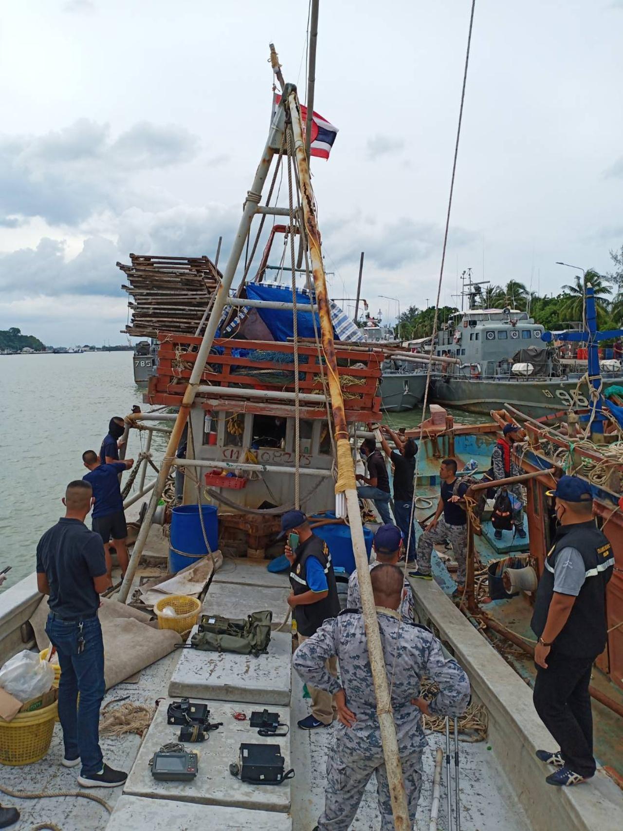 วานนี้ (7 มิ.ย.) เวลา 16.00 น. ที่ท่าเทียบเรือ ฐานทัพเรือสงขลา พล.ร.ต.สุรนันท์ แสงรัตนกูล รองผู้บัญชาการทัพเรือภาคที่ 2 ในฐานะรองผู้อำนวยการศูนย์อำนวยการรักษาผลประโยชน์ของชาติทางทะเล ภาค 2 เรือหลวงประจวบคีรีขันธ์ ได้ควบคุมเรือประมงอวนลากเดี่ยวเวียดนาม 1 ลำ พร้อมลูกเรือ 6 คน เข้าเทียบท่าที่ท่าเทียบเรือฐานทัพเรือสงขลา ทัพเรือภาคที่ 2 หลังจากที่ล่วงล้ำเข้ามาทำการประมง ห่างจากทุ่นไฟปากร่องสงขลา 152 ไมล์ทะเล