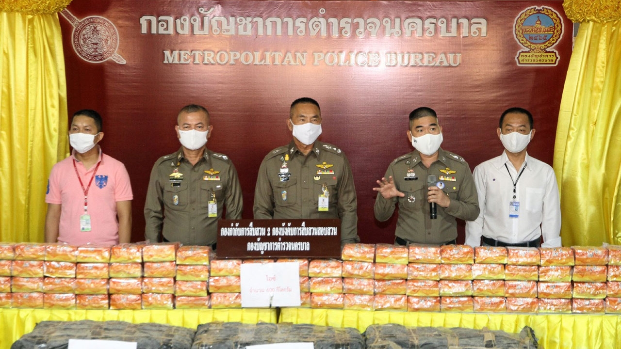 สืบนครบาลสกัดยาไอซ์บิ๊กลอต 600 กก.ลงใต้ เปิดเผยขึ้นเมื่อเวลา 10.30 น. วันที่ 17 ก.ค. ที่กองบัญชาการตำรวจนครบาล (บช.น.) พล.ต.ท.ภัคพงศ์ พงษ์เภตรา ผบช.น. พล.ต.ต.พีระพงศ์ วงษ์สมาน รอง ผบช.น. พล.ต.ต.อิทธิพล อัจฉริยะประดิษฐ์ รอง ผบช.น. พล.ต.ต.สันติ ชัยนิรามัย ผบก.สส.บช.น. ร่วมกันแถลง ข่าว พ.ต.อ.พรศักดิ์ เลารุจิราลัย ผกก.สส.2 บก.สส.บช.น. พ.ต.ท.เจษฎาภรณ์ อ่อนทองคำ รอง ผกก.สส.2 บก.สส.บช.น. จับกุมนายวุฒิชัย วงศ์พิพันธ์ อายุ 28 ปี อยู่บ้านเลขที่ 95/85 หมู่ 1 ต.บางกุ้ง อ.เมืองสุราษฎร์ธานี ข้อหามียาเสพติดให้โทษประเภท 1 (ยาไอซ์) ไว้ในความครอบครองเพื่อจำหน่ายโดยผิดกฎหมาย พร้อมของกลางยาไอซ์ 600 กก. มูลค่ากว่า 70 ล้านบาท รถสิบล้อพ่วง ยี่ห้อนิสสัน ยูดี ทะเบียน 70-0692 กระบี่ ส่วนพ่วง ทะเบียน 70-0693 กระบี่