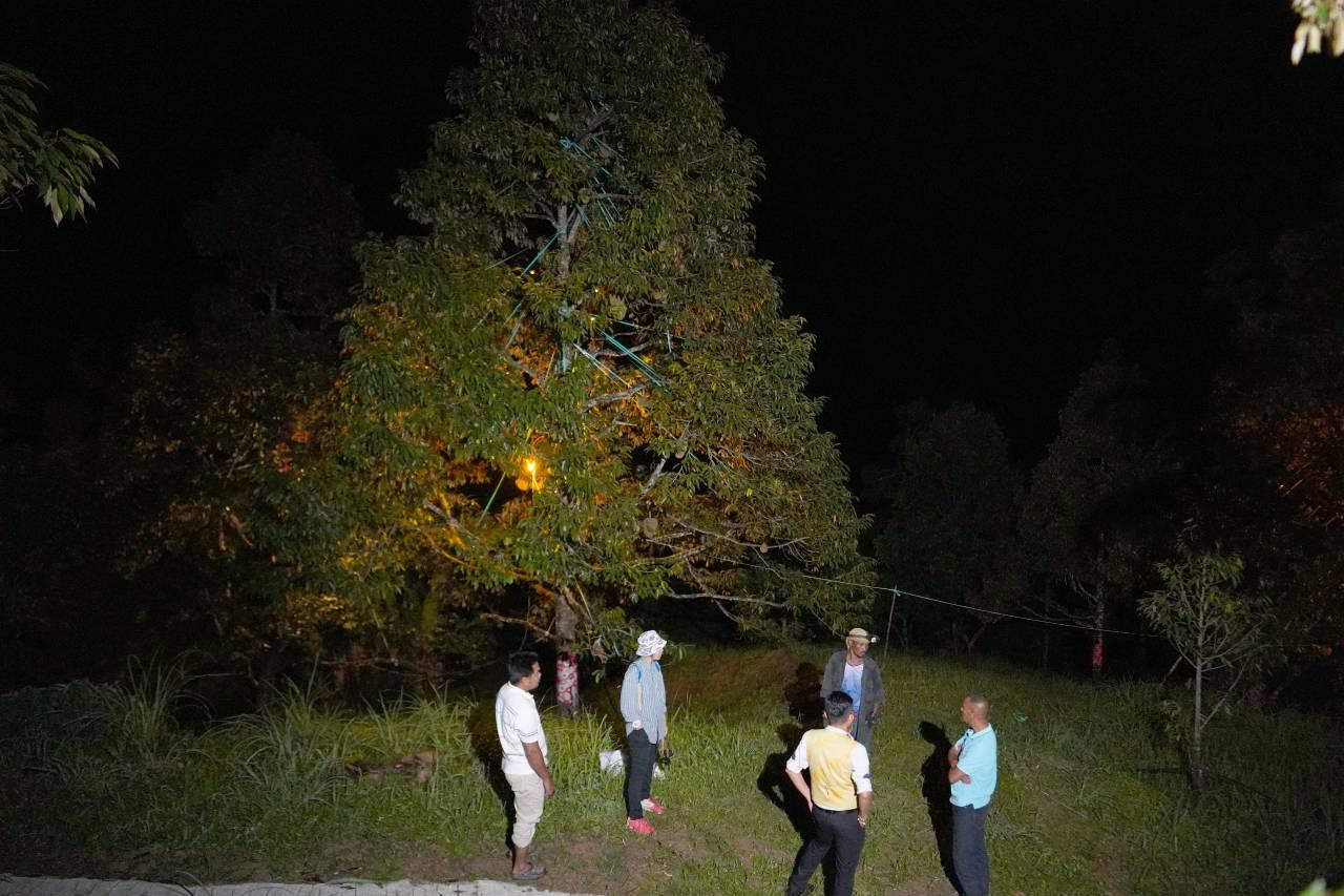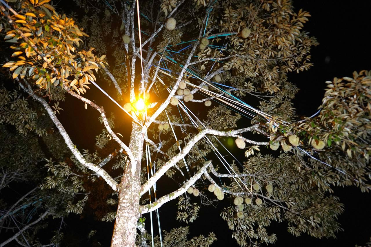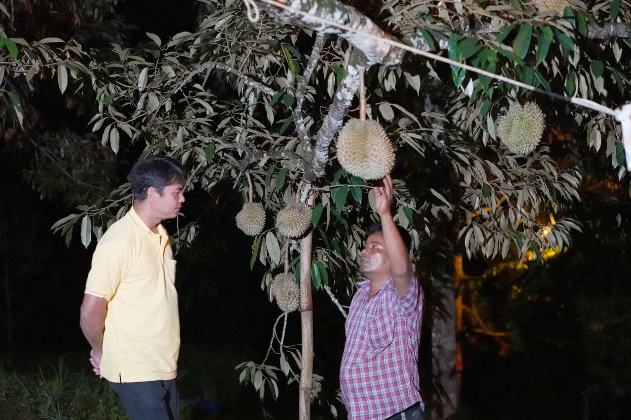 ด้าน นายจรัญ ศักดิมาตร ผู้ใหญ่บ้าน หมู่ 2 บ้านตะเน๊าะปูเตะใน เปิดเผยว่า หมู่บ้าน กม.26 ใน ต.ตะเน๊าะปูเตะใน อ.บันนังสตา จ.ยะลา เป็นเกษตรแปลงใหญ่ในพื้นที่บันนังสตา มีการบริหารจัดการทุเรียน ประชุมกันทุกเดือน มีการถ่ายทอดความรู้เรื่องการใช้ปุ๋ย การตัดเแต่งกิ่งทุเรียนทุกระยะของผลผลิตทุเรียน ด้านหลังที่เห็นจะเป็นไฟสีส้ม ติดบนต้นทุเรียน ใช้สำหรับไล่แมลง ไอเดียเกิดจากกลุ่มชาวบ้านที่ปลูกทุเรียนริมทางถนนในหมู่บ้าน สังเกตุพบว่าทุเรียนที่อยู่ใกล้เสาไฟส่องสว่าง ผลทุเรียนไม่มีหนอนรู จึงได้ทดลองใช้หลอดไฟสีส้มติดในแปลงทุเรียนของตัวเอง