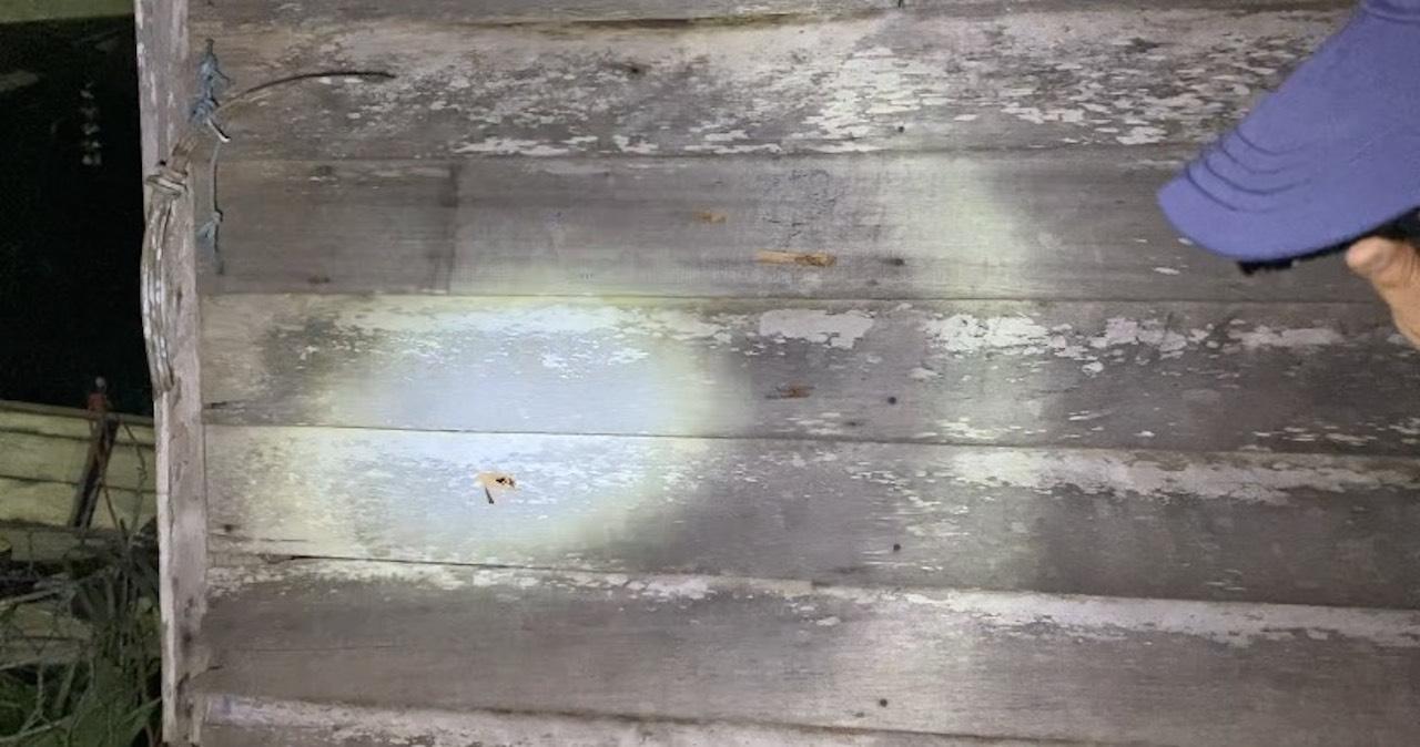 ที่เกิดเหตุบริเวณบ้านหลังดังกล่าว ซึ่งเป็นบ้านครึ่งปูนครึ่งไม้ ตรงฝาบ้านเจ้าหน้าที่ตำรวจพบร่องรอยการถูกยิงด้วยอาวุธปืนลูกซองขนาดเบอร์ 12 จำนวนหลายจุด เจ้าหน้าที่จึงได้บันทึกภาพไว้เป็นหลักฐาน