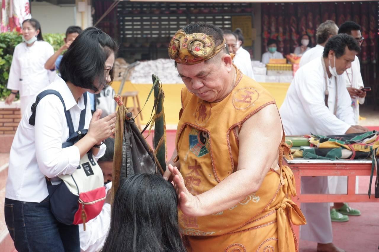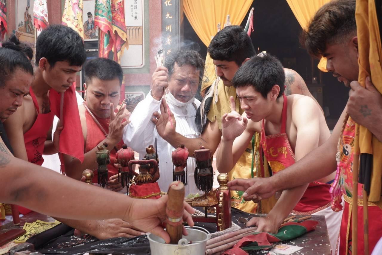 นางพิมนิภา ถาวร อายุ 57 ปี หัวหน้าร่างทรงหญิง กล่าวว่า การยกเสาเต็งโกถือว่าเป็นสัญลักษณ์ว่าเริ่มประเพณีถือศีลกินเจ ซึ่งเสาเต็งโก เป็นเสาที่ใช้ในการแขวนตะเกียน 9 ดวง ที่เทพองค์ศักดิ์สิทธิ์ใช้ในการเสด็จ สำหรับพิธีในวันนี้ ช่วงเช้าจะเป็นพิธีการขึ้นเสาเต็งโก อีกประมาณ 11 โมง จะเป็นการรับองค์เทวดาหรือองค์ฮ้วงเซี่ยงตี่ ในช่วงเช้า และช่วงกลางคืนจะเป็นการรับองค์ฮ้วงฮุดโจ้ว เพื่อให้ท่านมาปกป้องคุ้มครองพี่น้องที่มาถือศีลกินเจที่นี่ด้วย