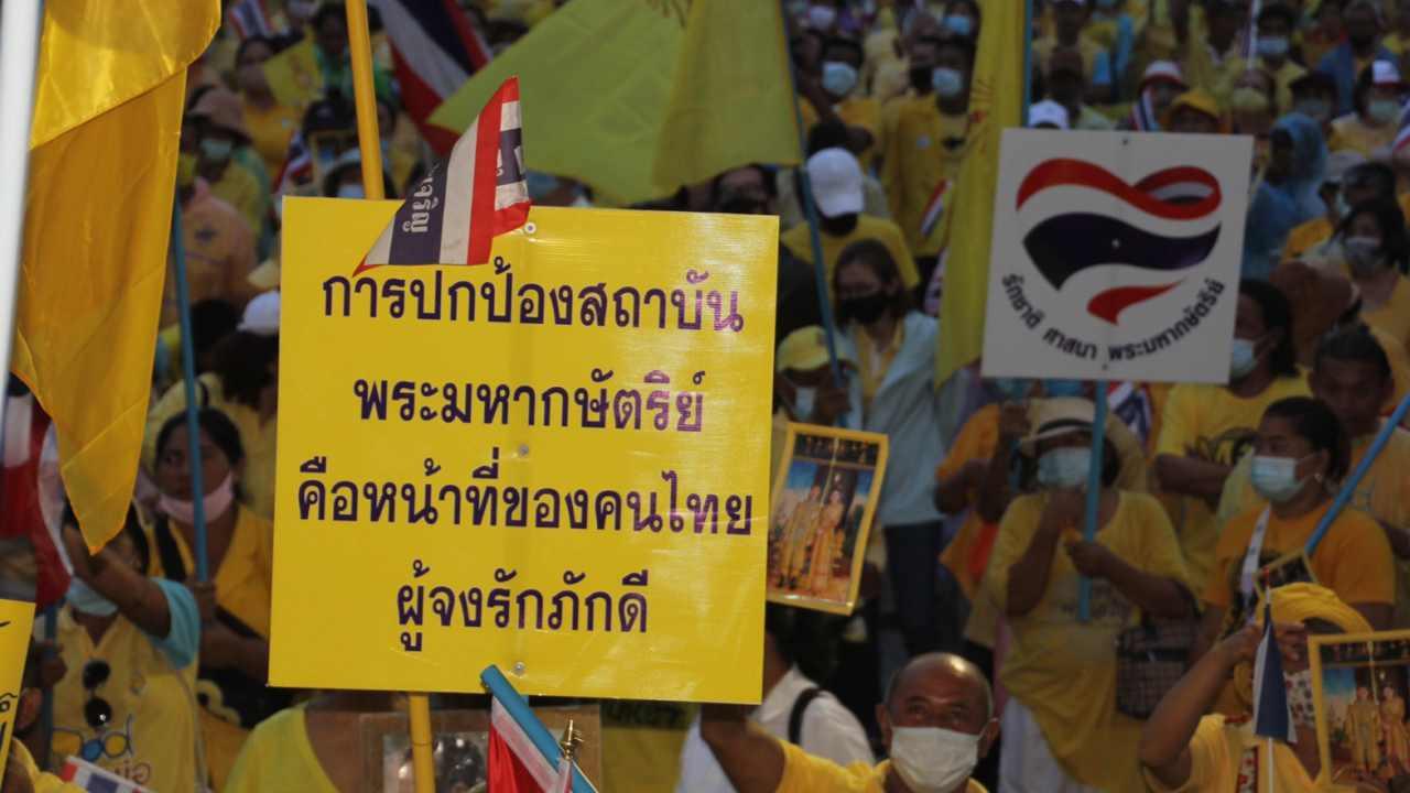 มีการโบกชาติไทย ธงประจำพระองค์รัชกาลที่ 10 ป้ายเเสดงข้อความ “การปกป้องสถาบันพระมหากษัตริย์ คือหน้าที่ของคนไทยผู้จงรักภักดี” “อย่าแตะต้อง พระเจ้าอยู่หัว” ส่วนบนเวทีมีการปราศรัยต่อต้านการกล่าวจาบจ้วงสถาบัน และเรียกร้องให้กลุ่มผู้เห็นต่างหยุดพฤติกรรมดังกล่าว โดยให้คำนึงถึงความปรองดองภายในชาติเป็นสำคัญ พร้อมทั้งให้อธิบายให้เยาวชนลูกหลานได้รับรู้ข้อมูลที่ถูกต้องของสถาบัน
