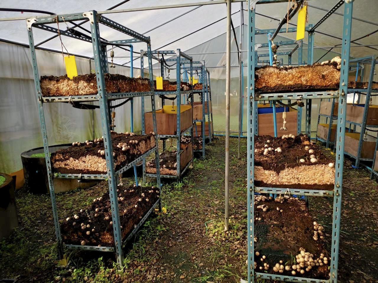 ไม่ว่าจะปลูกแบบคอนโด หรือปลูกกับพื้น จะเก็บเห็ดได้ประมาณ 3 รุ่น ได้ผลผลิตรุ่นละ 3-5 กก. ส่วนปลูกไว้ในตะกร้าจะเก็บได้แค่ครั้งเดียว ประมาณ 300-500 กรัม