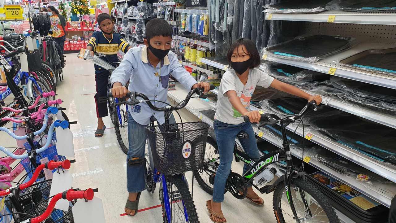 ขณะเดียวกัน นางสาวขวัญยืน สำลีว่อง อายุ 40 ปี ได้มาสอบถามความต้องการของเด็กๆ ทั้ง 3 คนว่า อยากได้อะไรมากที่สุด โดยเด็กๆ ตอบเป็นเสียงเดียวกันว่าอยากได้รถจักรยาน เพื่อไว้ปั่นไปซื้อของตามร้านค้าในหมู่บ้านให้กับแม่ และปั่นไปเที่ยวบ้านเพื่อนๆ โดยนางสาวขวัญยืนจึงได้พาเด็กๆ ทั้ง 3 คน ไปเลือกซื้อจักรยานคันโปรดด้วยตัวเองที่ห้างสรรพสินค้าเทสโก้โลตัส สาขาชุมพร และซื้อขนมที่เด็กๆ อยากกินอีกจำนวนหนึ่ง รวมมูลค่าเกือบ 1 หมื่นบาท โดยเด็กๆ ทั้ง 3 คนต่างดีใจและตื่นเต้นอย่างมากที่ได้เข้าไปในห้างสรรพสินค้าใหญ่ดังกล่าว เนื่องจากตั้งแต่เกิดมาเคยมีญาติพามาเที่ยวเพียงครั้งเดียวเท่านั้น
