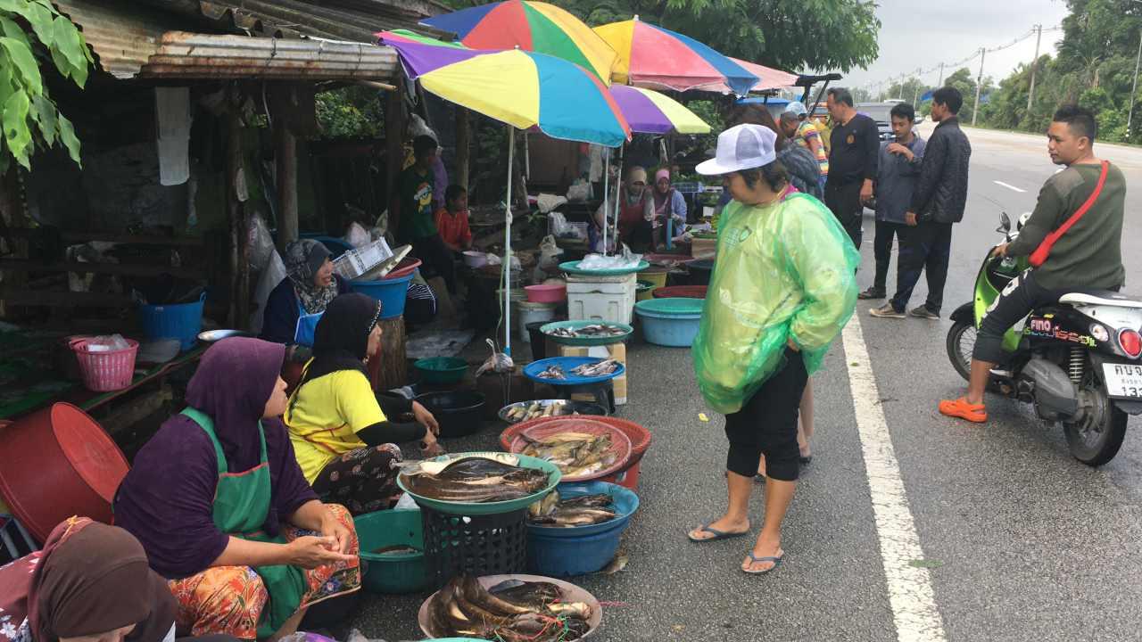 โดยบรรยากาศริมข้างทางถนนสายนราธิวาส-ตันหยงมัส ในพื้นที่ ต.ลำภู อ.เมือง จ.นราธิวาส ข้างทางมีกลุ่มแม่ค้านำปลาน้ำจืดที่มีจำนวนมากในช่วงน้ำหลากมาวางจำหน่าย ส่วนใหญ่เป็นปลาดุกนา ปลาช่อน ปลารำพัน ปลาเกล็ดหนา ปลาหมอ ปลาหวี ปลาตะเพียน ปลาขี้ขม ปลาไหล เมื่อน้ำเริ่มมากขึ้น หลายครอบครัวได้ออกไปวางข่ายหาปลาตามแม่น้ำลำคลองต่างๆ และบางส่วนรับซื้อต่อจากคนในหมู่บ้านที่ออกหาปลา รวมกับปลาที่หากันในครอบครัวแล้วมาวางจำหน่าย เพื่อเป็นรายได้เสริมช่วงงดกรีดยางในช่วงที่ในพื้นที่มีฝนตก