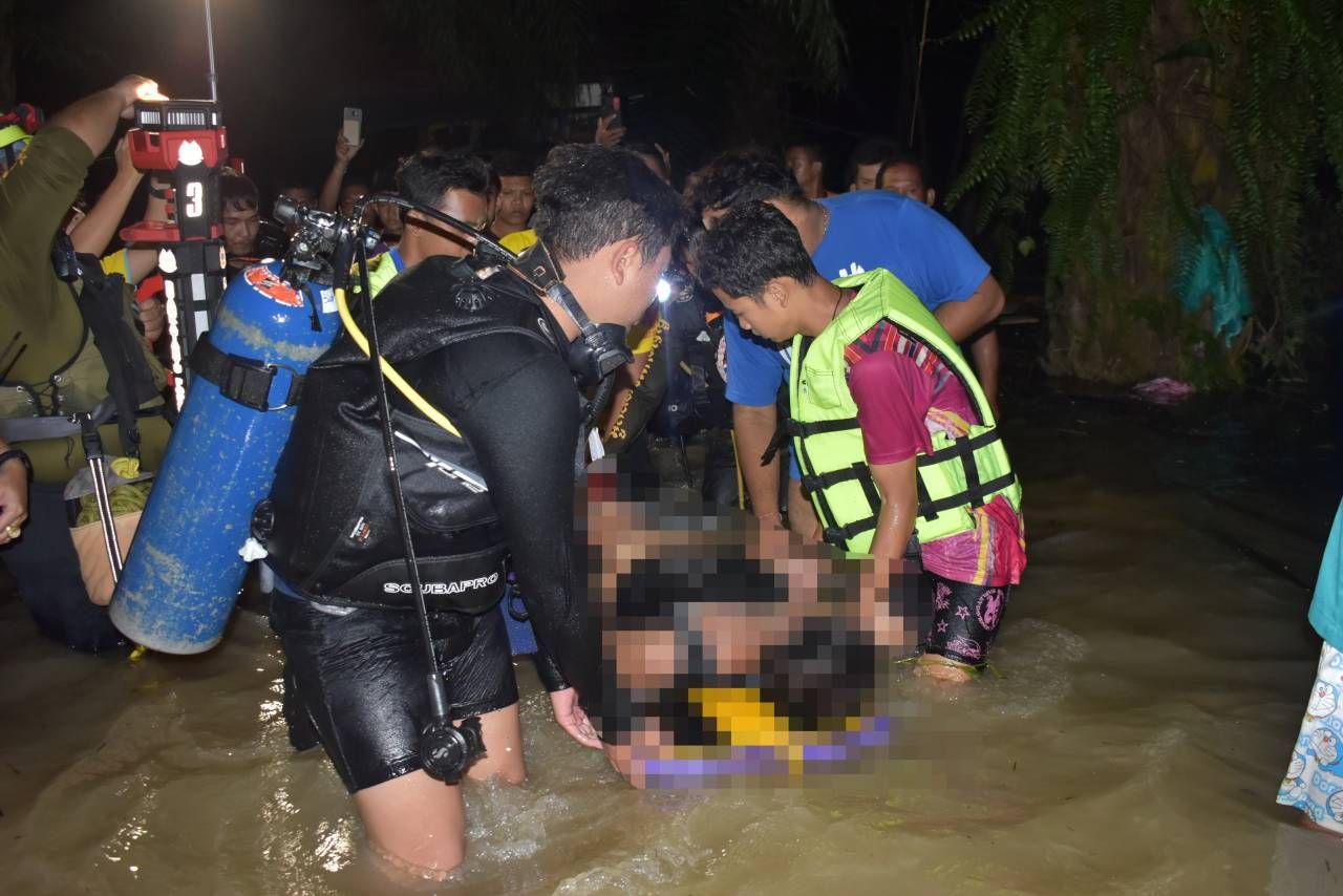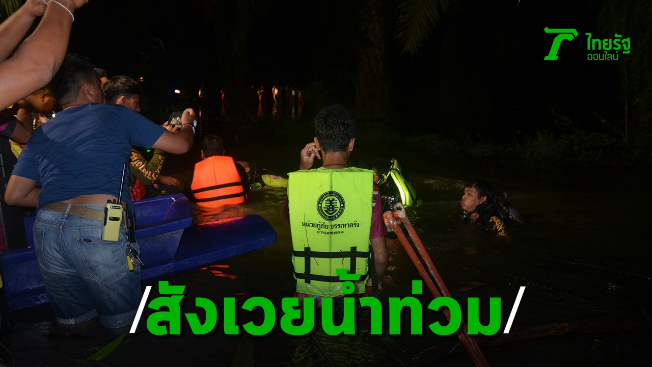 คนงานก่อสร้างวัย 49 ปี เรือล่มจมหายต่อหน้าเมียขณะขนของหนีน้ำ ระดมกำลังหน่วยกู้ภัย-ชุดประดาน้ำ 3 หน่วย ค้นหาจนพบศพในร่องสวนปาล์ม ท่ามกลางความเสียใจของญาติพี่น้อง เป็นศพแรกสังเวยน้ำท่วมตรัง