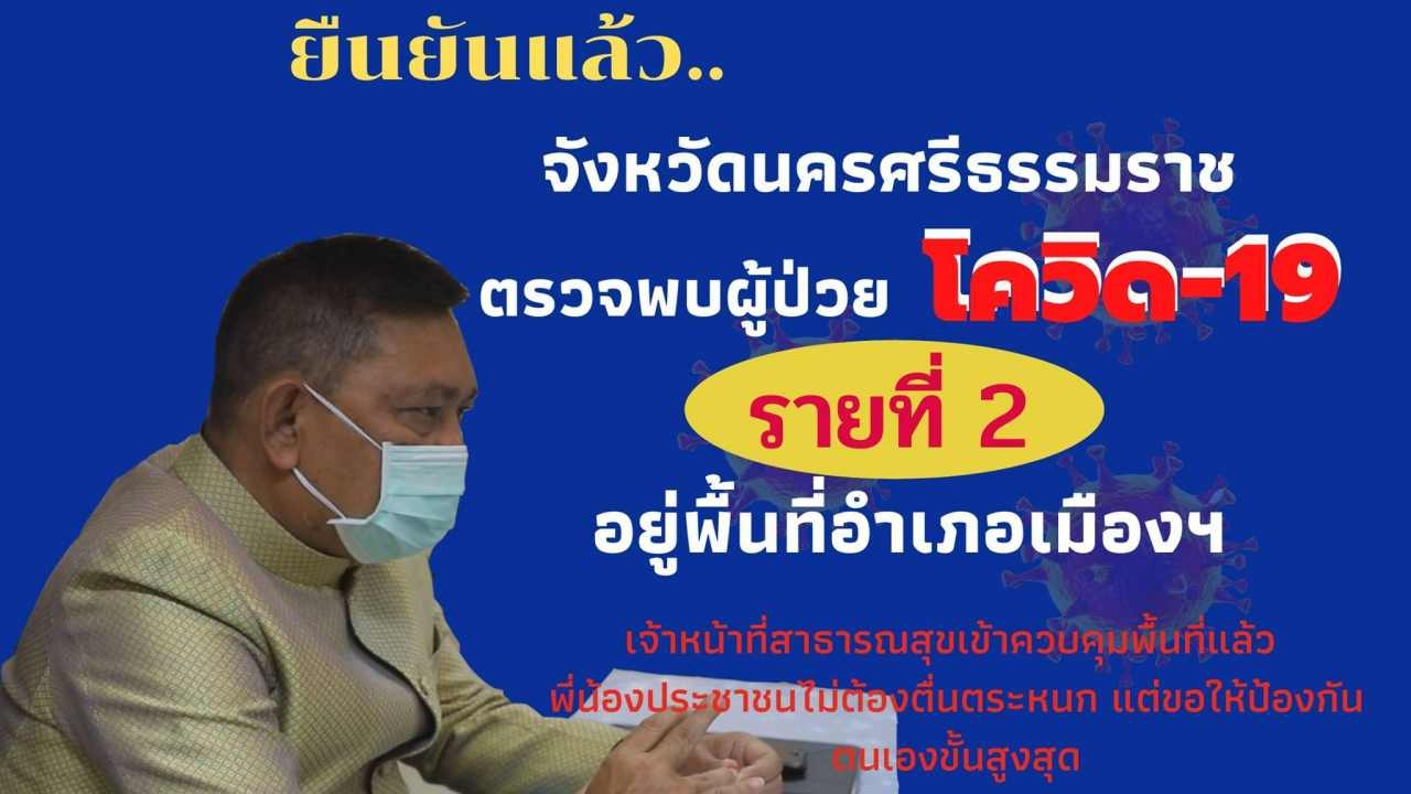 วันที่ 30 ธ.ค.63 นายไกรศร วิศิษฎ์วงศ์ ผู้ว่าราชการจังหวัดนครศรีธรรมราช เปิดเผยว่า จังหวัดนครศรีธรรมราช ได้ยืนยันผลตรวจพบผู้ป่วยโควิด-19 รายที่ 2 ของจังหวัด