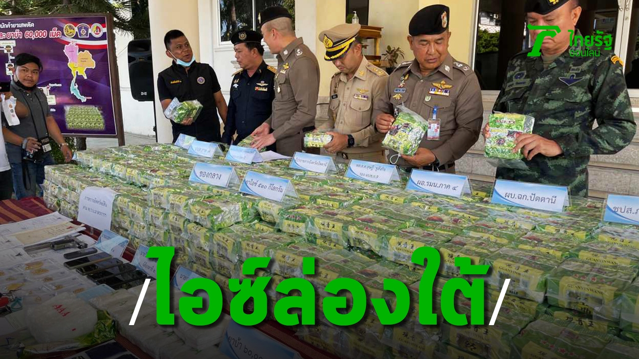 เครือข่ายยาเสพติด ขนไอซ์ลอตใหญ่จากภาคเหนือ ใส่ถุงชาจีน ใช้กระสอบข้าวทับ มากับรถบรรทุกพ่วง 18 ล้อ พักยาที่หาดใหญ่ เตรียมขนต่อไปปัตตานี ส่งออกประเทศเพื่อนบ้าน โดนจับก่อน ของกลาง 510 กก. กับยาบ้าอีก 5 หมื่นเม็ด ขยายผลยึดทรัพย์ ได้กว่า 110 ล้าน