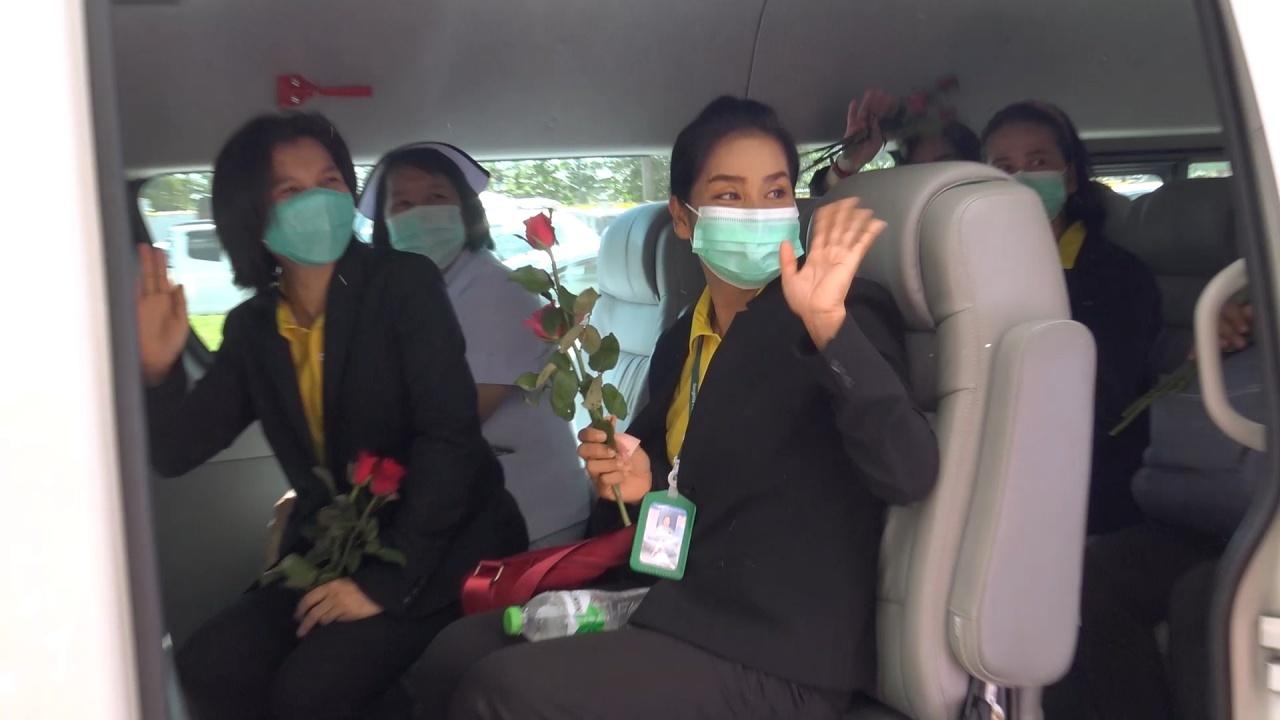 ผู้บริหารและจนท.โรงพยาบาลสงขลา ทำพิธีส่งทีมแพทย์ พยาบาล และผู้ช่วย 10 คน ที่มีประสบการณ์รับมือโควิด-19 ใน รพ.สนาม ขึ้นรถเดินทางไปช่วยดูแลผู้ป่วยใน รพ.สนาม เมืองทองธานี ระหว่าง 11-25 พ.ค.