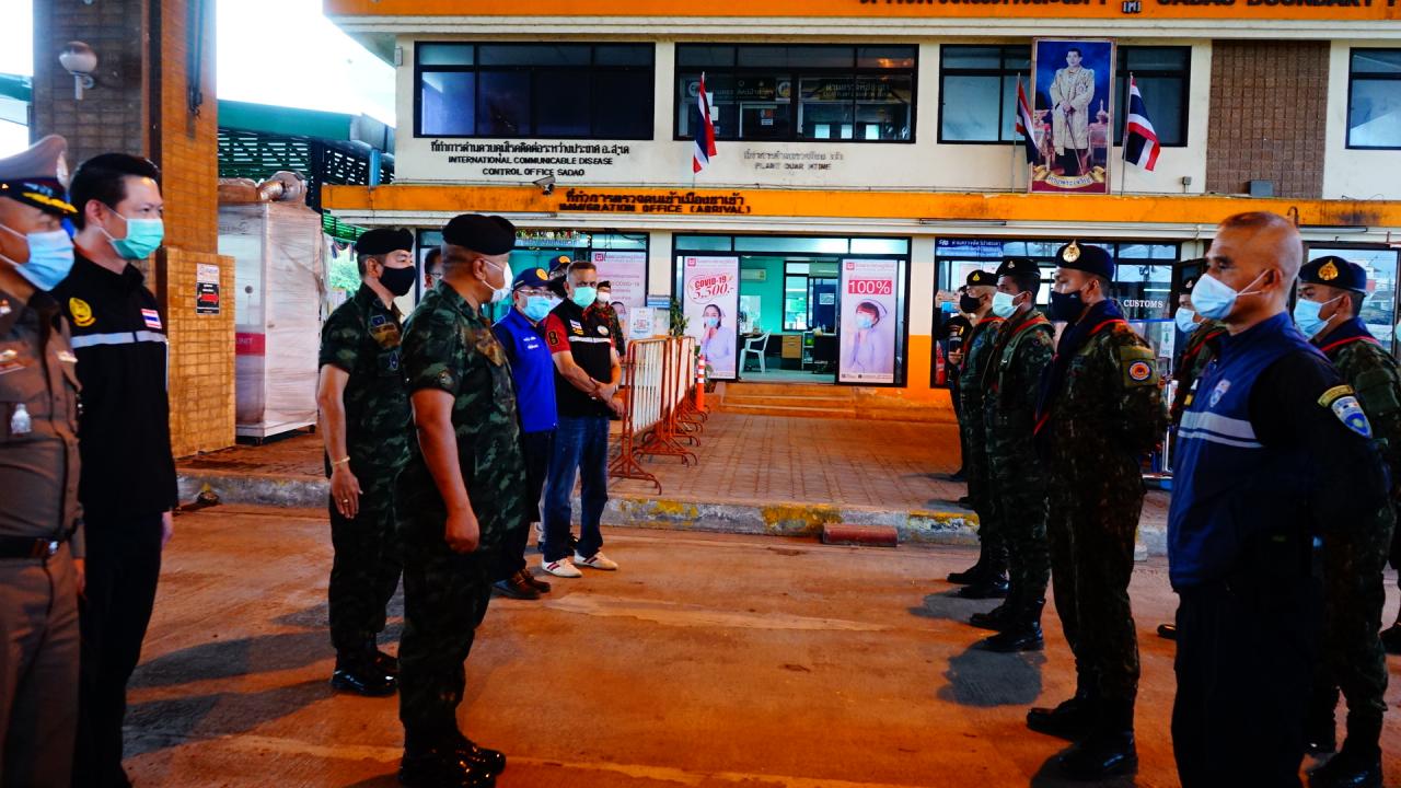 พร้อมทั้งให้กำลังใจแก่ จนท.ทุกส่วนที่เสียสละทุ่มเททำงานอย่างหนักในสถานการณ์การแพร่ระบาดตั้งแต่ต้นจนถึงปัจจุบัน อีกทั้งได้มอบอุปกรณ์ป้องกัน หน้ากากอนามัย และแอลกอฮอล์แบบพกพา ให้กับ จนท. เพื่อใช้ในการปฏิบัติงาน โดยมี พ.อ.อายุพันธ์ กรรณสูต ผบ.ฉก.ร.5 และ หน.ส่วนราชการในพื้นที่ให้การต้อนรับ ณ ด่านพรมแดนสะเดา ต.สำนักขาม อ.สะเดา จ.สงขลา