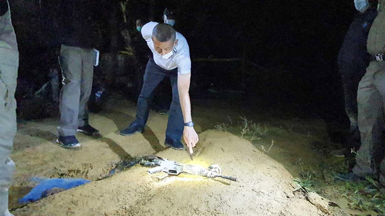ตรวจยึดของกลางของคนร้ายที่เสียชีวิตมีอาวุธปืนเอ็ม 16 จำนวน 1 กระบอก พร้อมแมกกาซีน 3 อัน กระสุนจำนวนหนึ่ง ลูกระเบิดสังหารเอ็ม 26 จำนวน 2 ลูก ปืนสั้นขนาด 9 มม. 1 กระบอก ปลอกกระสุนทั้งของคนร้ายและเจ้าหน้าที่อีกจำนวนหนึ่ง รวบรวมไว้เป็นของกลาง