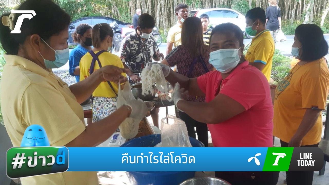 ช่วงปลายเดือน พ.ค.ที่ผ่านมา ป้าทา พร้อมลูกๆ ได้ช่วยกันทำขนมจีน น้ำพริก น้ำยา แกงไตปลาตำรับเมืองคอน หยิบจับใส่ถุงพร้อมผักเหนาะเครื่องเคียง นำไปแจกชาวบ้านในชุมชนคนละแวกใกล้เคียง ทั้งเด็ก คนหนุ่มสาว ตลอดจนผู้สูงอายุ ให้ไปคนละ 1 ชุด ชุดละ 1 กิโลกรัม รับประทานได้ 3-5 คน หรือ 1 ครอบครัว โดยมีเพื่อนบ้านมาช่วยกันคนละไม้คนละมือ
