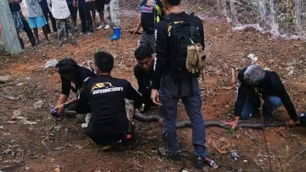 ขณะที่นายเอกรัฐ ยศกิจ อายุ 35 ปี ครูฝึกและรองหัวหน้าทีม จ.นครศรีธรรมราช กล่าวว่า ด้วยพื้นที่ที่ทำงานค่อนข้างลำบากทำให้เจ้าหน้าที่ได้รับอันตรายโดนงูกัด ทางทีมงานจึงได้ตัดสินใจล่างูจงอางตัวปัญหาของชาวบ้านให้ได้ โดยงูจงอางที่จับได้มีอาการบาดเจ็บค่อนข้ารุนแรงทำให้เคลื่อนไหวช้า พอเจ้าหน้าที่เข้าไปกดดันเรื่อยๆ งูจึงเลื้อยหนีไปทางด้านหลังที่ซึ่งมีเจ้าหน้าที่คอยเฝ้าระวังอยู่แล้ว จึงจับตัวได้ ส่วนภารกิจการล่างูนั้นทางทีมงานยังคงไม่ยุติขอเข้าไปเคลียร์พื้นที่อีกครั้ง เพราะชาวบ้านแจ้งว่างูค่อนข้างเยอะ ส่วนงูในพื้นที่นี้มีจำนวนกี่ตัวนั้นยังไม่สามารถระบุได้ เพราะการกระจายงูในประเทศไทยค่อนข้างเยอะมาก เนื่องจากถิ่นที่อยู่อาศัยโดนบุกรุกโดยคน สำหรับวันนี้สามารถจับได้จำนวน 3 ตัว เป็น งูจงอาง 1 ตัว และงูเห่าอีก 2 ตัว