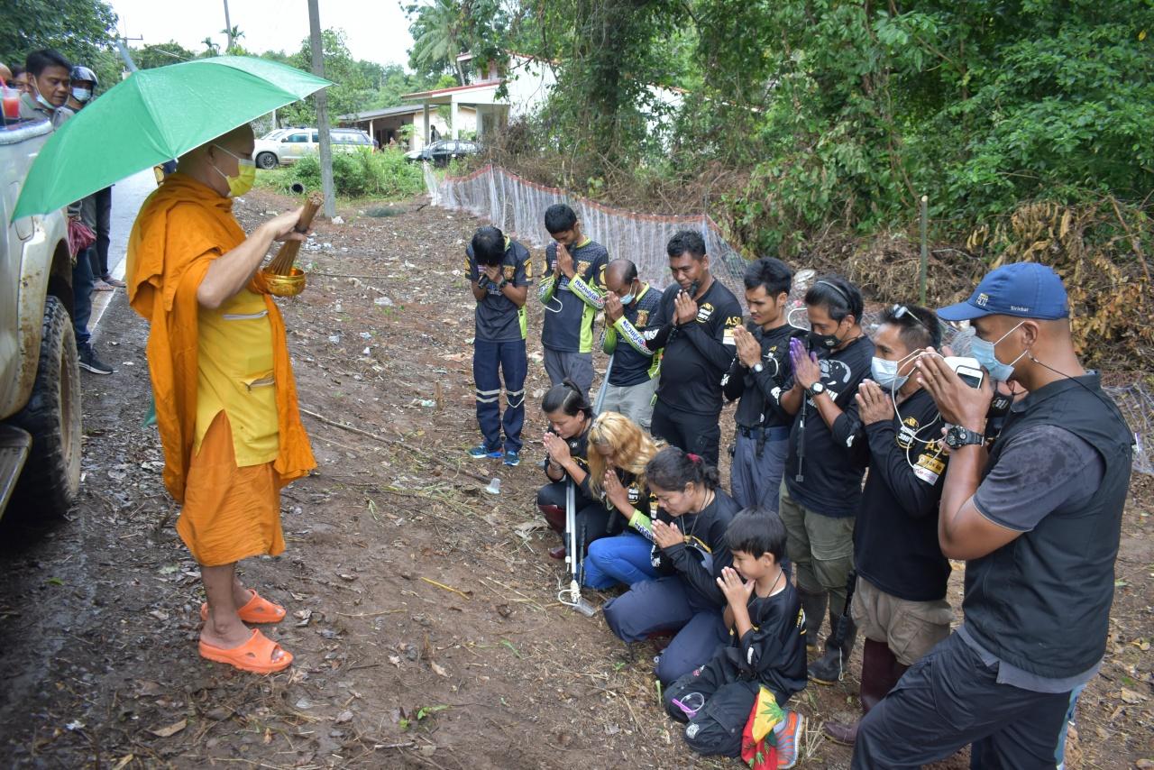 วันนี้ จึงเริ่มกระจายกำลังลงปูพรม ในป่ารกทึบเนื้อที่กว่า 2 ไร่ ซึ่งมีหญ้าสูงต่ำปกคลุมทั่วบริเวณ มีการนำรถแบคโฮ และรถจักรกลขนาดใหญ่มาทำการปรับสภาพพื้นที่รกทึบดังกล่าว ให้โล่งเตียนได้บางส่วน ควบคู่ไปกับการเดินเท้าค้นหา ปรากฏว่าในระหว่างที่ นายปรางมาศ เจริญวัย อายุ 36 ปี ประธานทีมอสรพิษวิทยาภาคใต้ ซึ่งเป็นหัวหน้าชุด ได้พบเจองูเห่า ยาวประมาณ 1 เมตร หลบซ่อนอยู่ภายในโพรงดินใต้หิน จึงได้ทำการใช้มือเข้าไปจับบริเวณหาง เพื่อนำตัวออกมาจากโพรงตามยุทธวิธี แต่ปรากฏว่าด้วยสภาพป่ามีหญ้ารกทึบ และมีหิน ทำให้งูเห่าตัวดังกล่าวได้หมุนตัวกลับมาฉกเข้าบริเวณหัวแม่มือด้านขวาจนได้รับบาดเจ็บ แต่ยังคงใช้ความพยายามร่วมกับเจ้าหน้าที่รายอื่น จนสามารถจับงูเห่าตัวดังกล่าวไว้ได้ ก่อนที่เพื่อนกู้ภัยจะให้การปฐมพยาบาลเบื้องต้น และนำขึ้นรถกู้ภัยรีบนำส่ง รพ.ศูนย์ตรังอย่างเร่งด่วนขณะนี้อาการปลอดภัยแล้ว แต่ยังต้องนอนรอดูอาการ