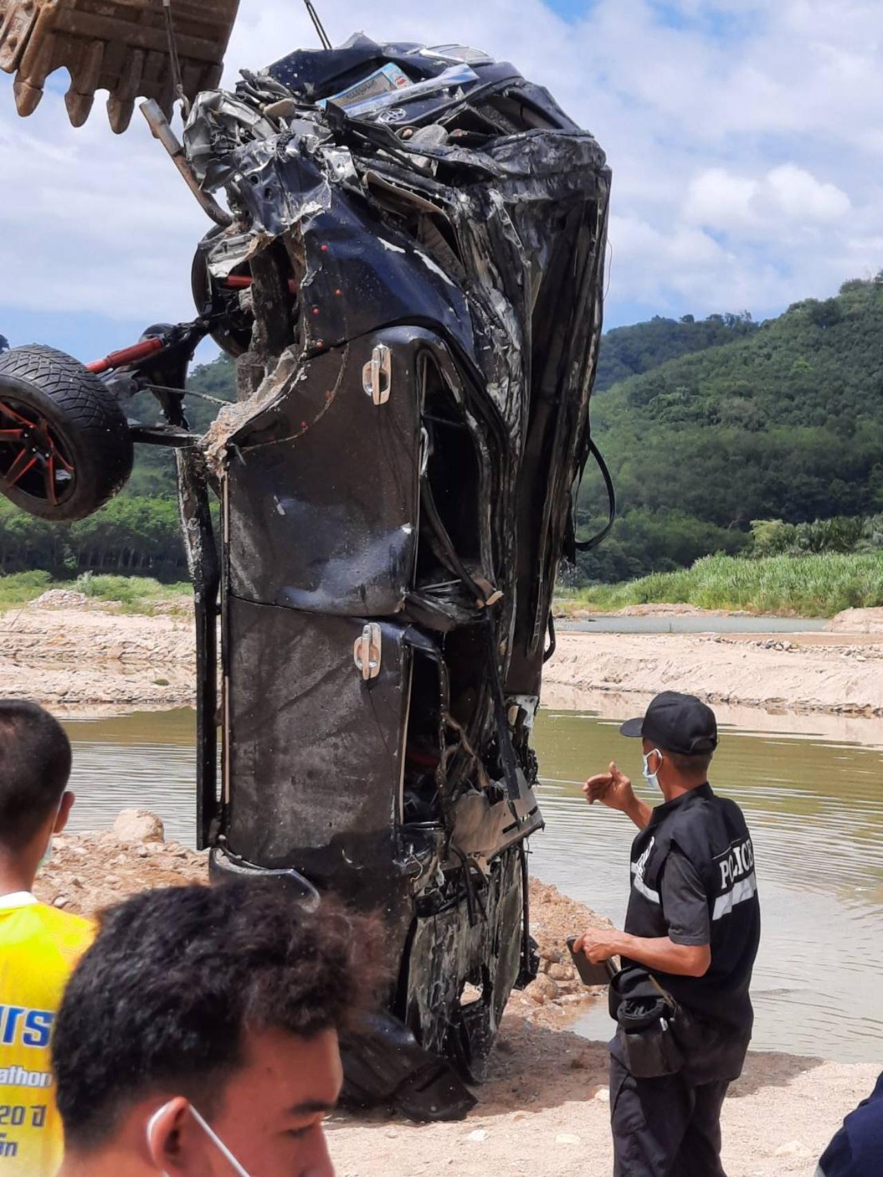 ล่าสุด เมื่อเวลา 14.00 น. วันที่ 26 มิ.ย.64 นายสาทร หวังพัฒน์ นายอำเภอนบพิตำ และพ.ต.อ.บุญเชิญ ลิ่มประจวบพงษ์ ผกก.สภ.นบพิตำ จ.นครศรีธรรมราช ได้รับแจ้งว่าได้พบซากรถยนต์โตโยต้า ฟอร์จูนเนอร์สีดำ ทะเบียน กย-4283 นครศรีธรรมราชแล้ว โดยพบซากรถลอยไปติดบ่อทรายแห่งหนึ่งริมคลอง หมู่ 1 ต.กลาย ห่างจากจุดตกสะพานประมาณ 500 เมตร สภาพรถยุบพังยับทั้งคันไม่เหลือชิ้นดี เจ้าหน้าที่จึงได้นำรถแบ็กโฮมาทำการยกซากรถมาเก็บไว้ที่ สภ.นบพิตำ ก่อนแจ้งญาติของผู้เสียชีวิตมาติดต่อรับซากรถต่อไป.