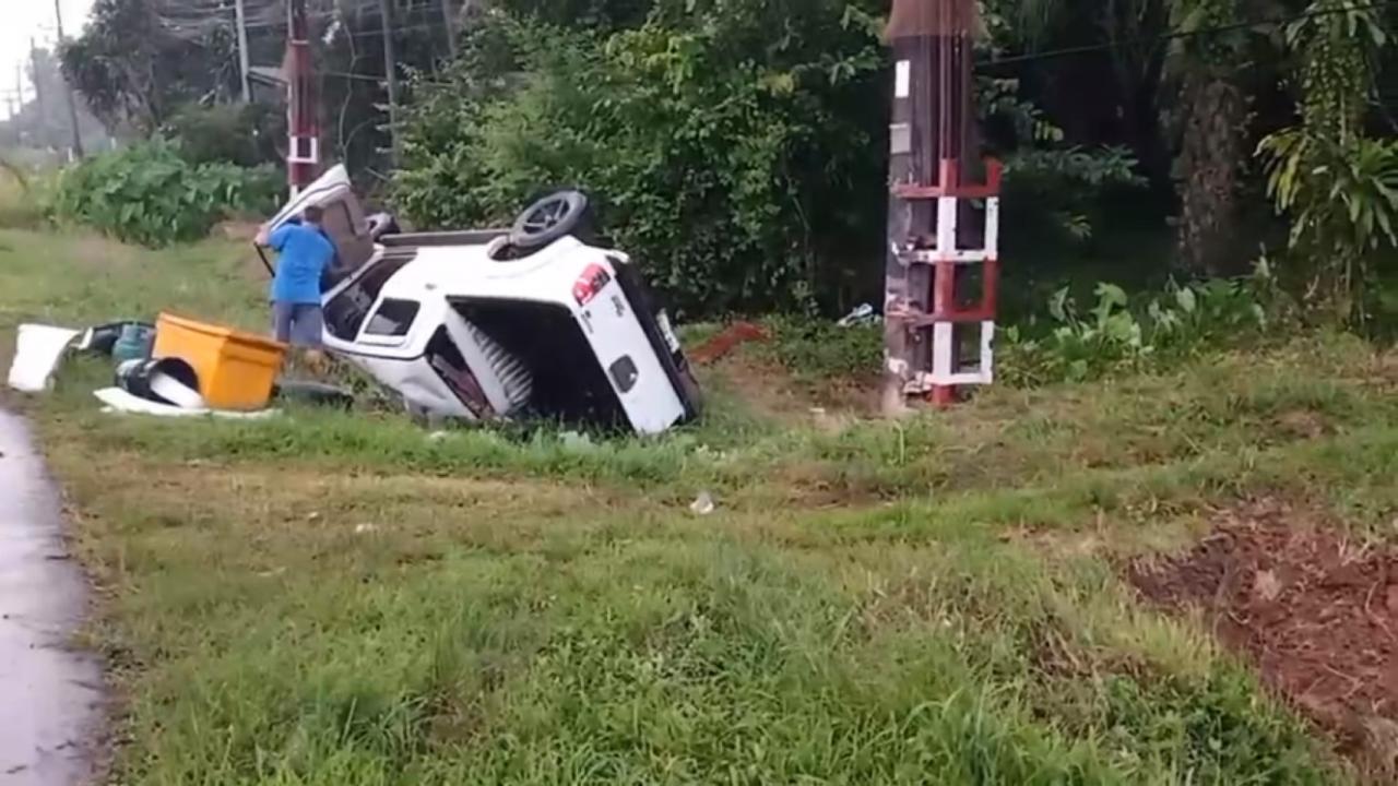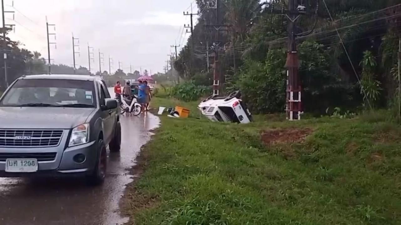 เมื่อเวลา 09.00 น. วันที่ 7 ก.ค. 64 ผู้สื่อข่าวรายงานว่า ศูนย์วิทยุรับแจ้งเหตุและสั่งการนเรนทรตรัง ได้รับแจ้งเกิดอุบัติเหตุรถกระบะพลิกคว่ำ บริเวณโค้งโคกทำเนียบ ริมถนนสายตรัง-ปะเหลียน เขตรอยต่อระหว่างหมู่ 1 กับ หมู่ 4 ต.ท่าพญา อ.ปะเหลียน จ.ตรัง ก่อนจะสั่งการให้หน่วยกู้ชีพเทศบาล ต.ท่าพญา หน่วยกู้ชีพ รพ.ย่านตาขาว และ พ.ต.ต.ฉุกรี มัดศรี สว. (สอบสวน) สภ.ปะเหลียน เข้าตรวจสอบ ไปตรวจสอบยังที่เกิดเหตุ ระหว่างนั้นมีฝนตกโปรยปรายลงมาไม่ขาดสาย