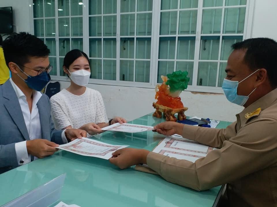 เมื่อวันที่ 12 ก.ค. 64 ที่ จ.ภูเก็ต นายจีระศักดิ์ คงธนถาวรสกุล ปลัดอําเภอ ในฐานะเจ้าพนักงานปกครองชำนาญการพิเศษ หัวหน้ากลุ่มงานทะเบียนและบัตรได้ดำเนินการจดทะเบียนสมรสให้กับ นางสาวณัฐนันท์ ฉันทแดนสุวรรณ อายุ 32 ปี และนายฟรานซิส หว่อง อายุ 32 ปี ชาวฮ่องกง ซึ่งการจดทะเบียนสมรสในครั้งนี้มีความพิเศษ เนื่องจากผู้ที่เดินทางเข้ามาจดทะเบียนฝ่ายชายเป็นชาวฮ่องกง เดินทางมาจากเขตบริหารพิเศษฮ่องกงแห่งสาธารณรัฐประชาชนจีน และเข้ามาในจังหวัดภูเก็ตผ่านโครงการภูเก็ตแซนด์บ็อกซ์ ส่วนฝ่ายหญิงเดินทางมาจากกรุงเทพมหานคร