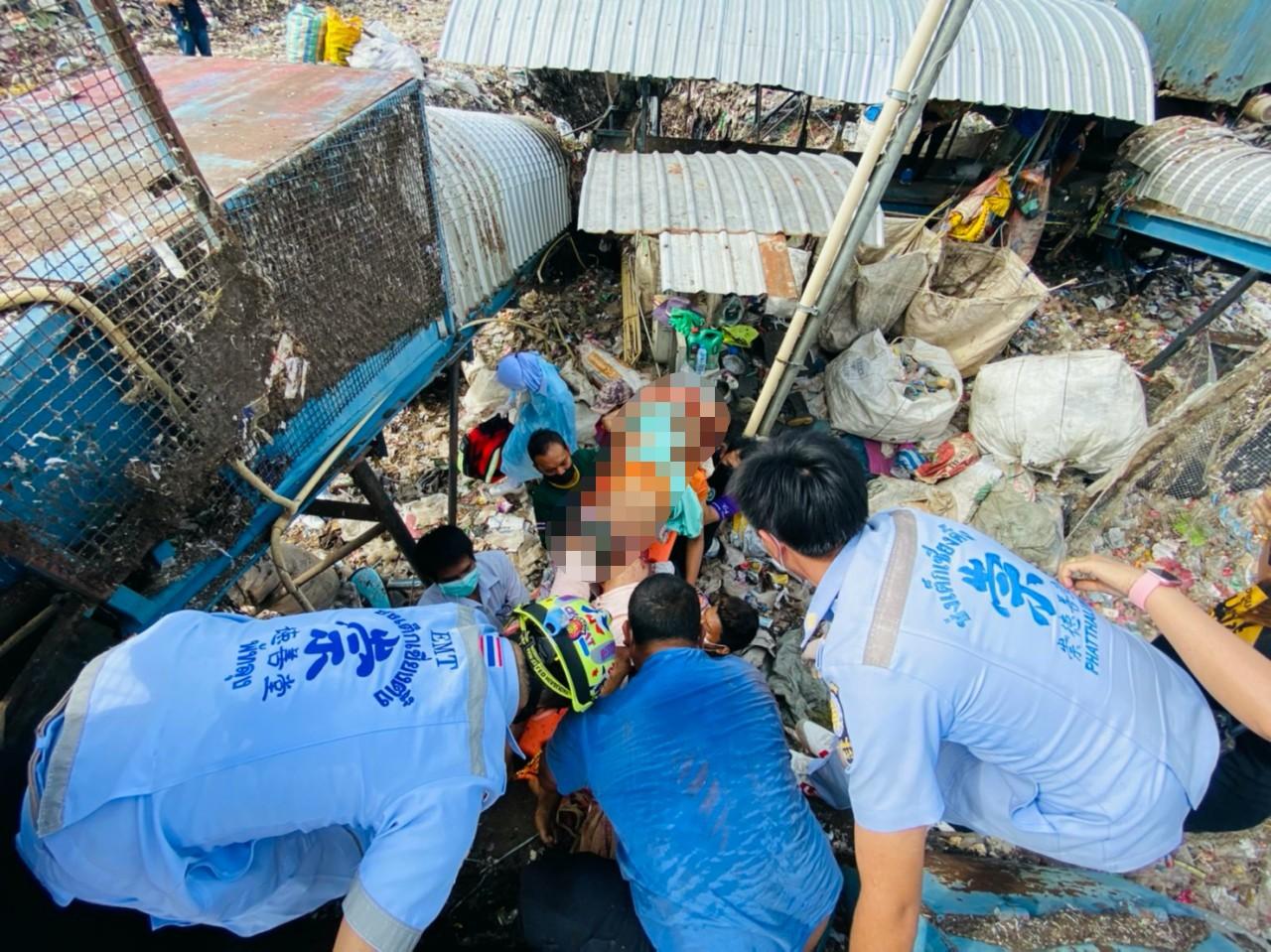 ด.ช.วัย 14 ปี เข้าไปเก็บขยะในเครื่องบดขยะ คนงานไม่รู้เปิดเครื่องทำงานจนร่างไปติดใบมีดเหล็กเสียบติดอยู่ภายในเครื่อง กู้ภัยพัทลุงใช้เวลาช่วยร่วมชั่วโมง แงะร่างออกจากเครื่อง ส่ง รพ.ปลอดภัยแล้ว