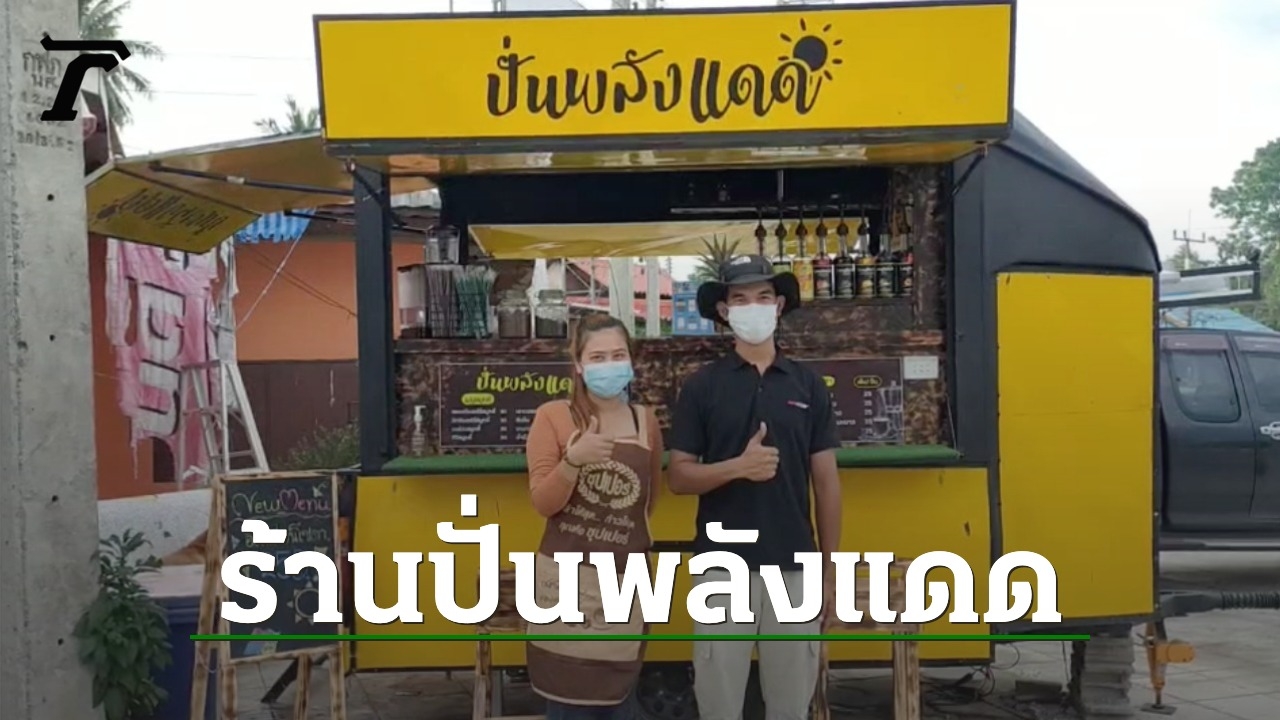 วัยรุ่นสร้างตัวไอเดียเจ๋ง หนุ่มสาวเมืองคอน ทำรถน้ำปั่นเคลื่อนที่ "ปั่นพลังแดด" ใช้โซลาร์เซลล์ผลิตไฟฟ้า เผยช่วงโควิดขายวันละ 20-30 แก้วแบบนี้ คาดใช้เวลา 3 เดือน คืนทุนที่ทำรถไป 2 หมื่นกว่าบาท