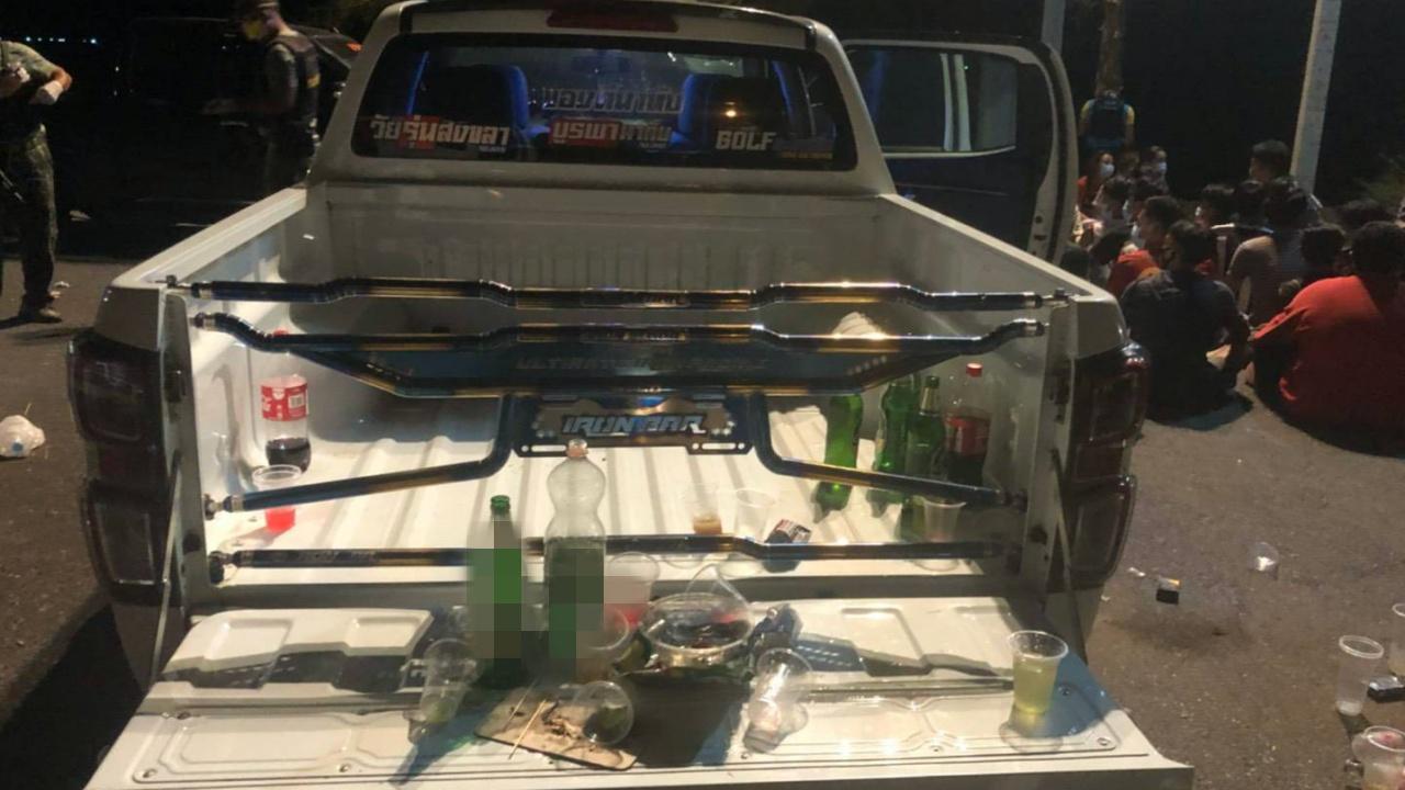 พบกลุ่มวัยรุ่นจำนวนมากทั้งชายและหญิงนั่งมั่วสุมดื่มสุรา เลี้ยงสังสรรค์ เปิดเครื่องเสียงรถยนต์เสียงดัง มีการโพสต์กลุ่มวัยรุ่นที่มาร่วมงานปาร์ตี้และภาพขณะเป่าเทียนเค้กวันเกิดให้กับวัยรุ่นคนหนึ่งด้วย ซึ่งแทบทุกคนไม่มีใครสวมหน้ากากอนามัย เป็นการกระทำความผิดฝ่าฝืนคำสั่งคณะกรรมการโรคติดต่อจังหวัดสงขลา และฝ่าฝืน พ.ร.ก.ฉุกเฉิน เจ้าหน้าที่จึงได้ควบคุมตัวกลุ่มวัยรุ่นที่ร่วมงานปาร์ตี้วันเกิดทั้งหมด 61 คน ในจำนวนนี้เป็นเยาวชนอายุต่ำกว่า 18 ปี ถึง 30 คน พร้อมของกลางเหล้าเบียร์จำนวนหนึ่ง ควบคุมตัวส่งพนักงานสอบสวน สภ.ควนมีดและประสานเจ้าหน้าที่สาธารณสุขมาตรวจหาเชื้อทั้ง 61 คน ก่อนแจ้งข้อหาดำเนินคดี 2 ข้อหา คือฝ่าฝืนพ.ร.ก.ฉุกเฉิน และฝ่าฝืน พ.ร.บ.โรคติดต่อ