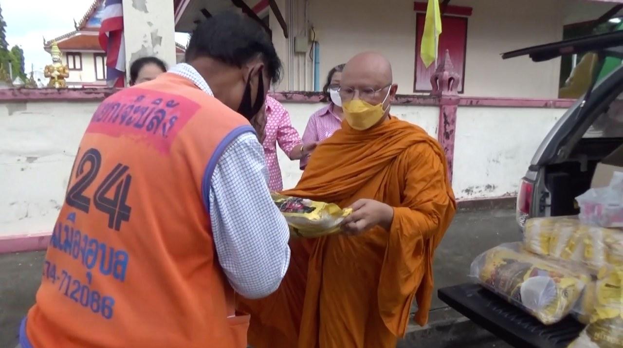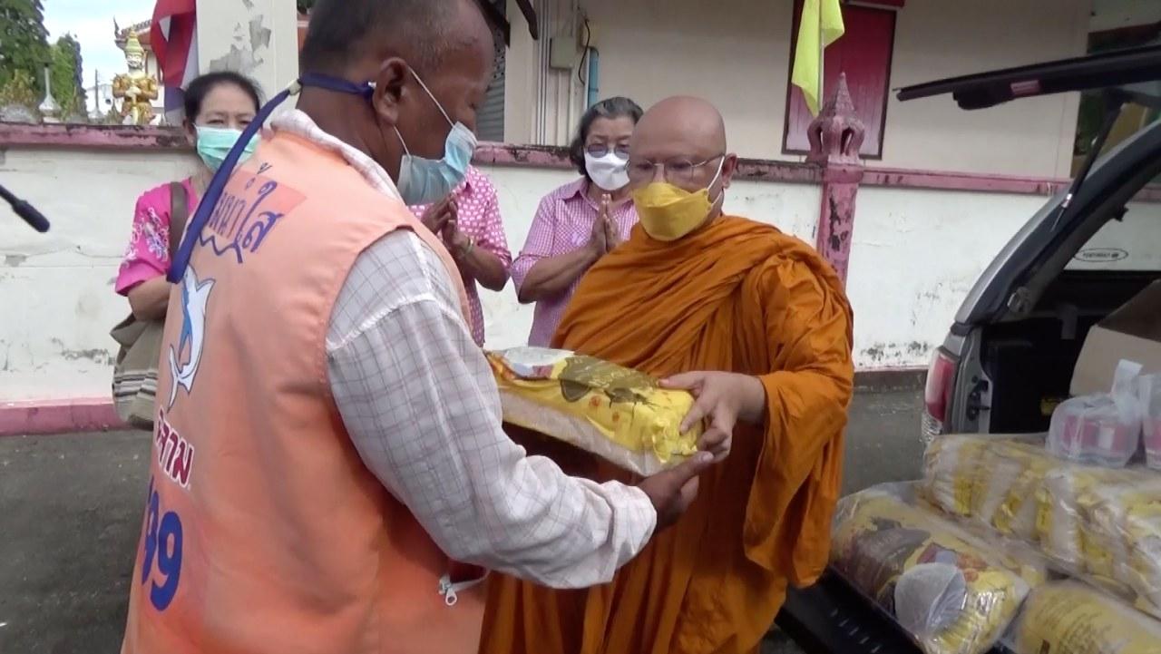 วัดชนาธิปเฉลิม พระอารามหลวงที่สตูล พระสงฆ์แบ่งปันมอบข้าวสาร ปลากระป๋อง ช่วยวินมอเตอร์ไซค์ที่ได้รับผลกระทบจากพิษโควิด ไม่มีผู้โดยสารขาดรายได้ และชาวบ้านที่ถูกกักตัวในพื้นที่ ต.คลองขุด ด้วย