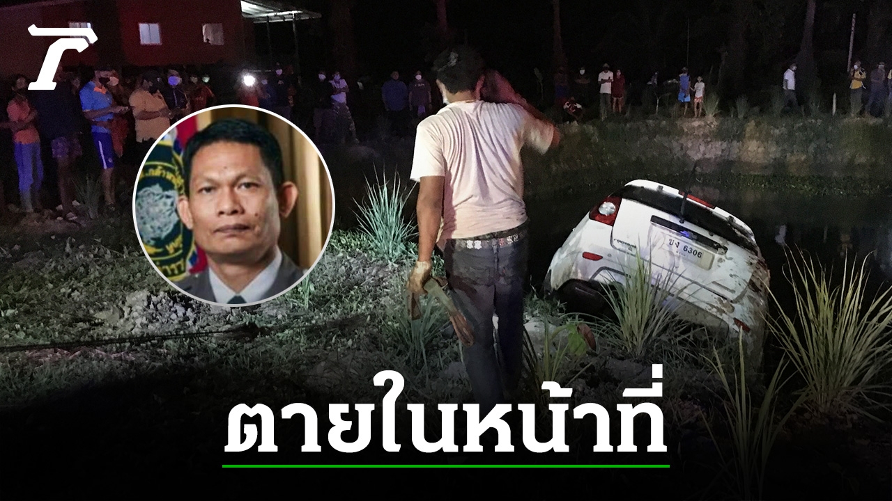 สลด ตร.มือปราบ สว.สืบภาค 9 เร่งขับรถเพื่อร่วมทีมกองปราบและตำรวจพัทลุง เข้าคลี่คลายคดีฆ่า 2 พี่น้องในพื้นที่ อ.เขาชัยสน จนรถเสียหลักแหกโค้งลงไปในสระน้ำริมถนน อ.ปากพะยูน ดับอนาถร่างติดคารถ