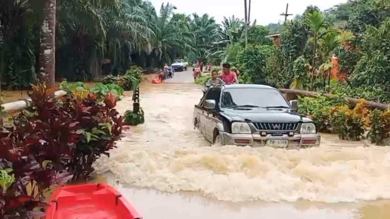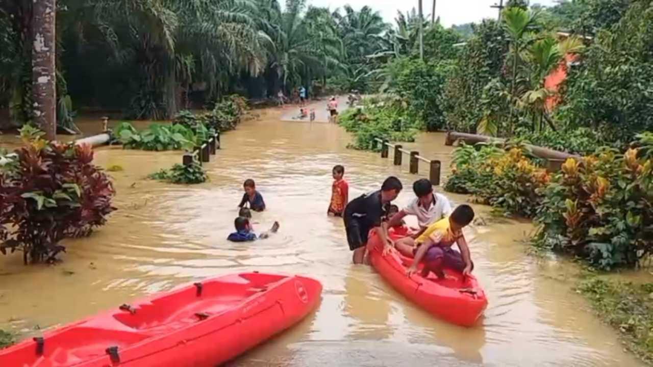 ตรังฝนตกหนักทำให้น้ำป่าไหลหลากเข้าท่วมใน 3 อำเภอ 4 หมู่บ้านรวม 100 ครัวเรือนนับเป็นรอบที่ 3 ของปี 64 โดยเฉพาะ อ.ปะเหลียน หนักสุด ลุงเจ้าของบ่อปลาช้ำปลาเลี้ยง 5 บ่อหายไปกับน้ำ ปภ.เร่งช่วยแล้ว