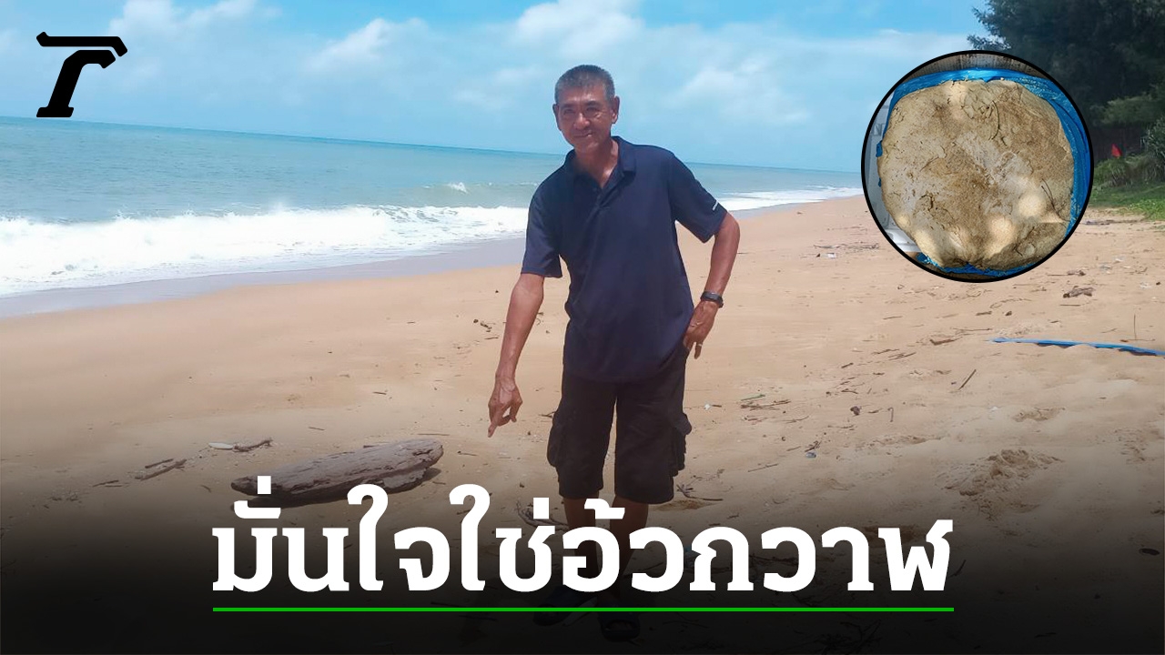 หนุ่มใหญ่ชาวภูเก็ต วิ่งออกกำลังกายยามเช้าบริเวณหาดไม้ขาว เจอก้อนคล้ายอำพันทะเล หรืออ้วกวาฬ หนักเกือบ 20 กก. เผยถ้าใช่ ก้อนนี้มูลค่านับล้านบาท
