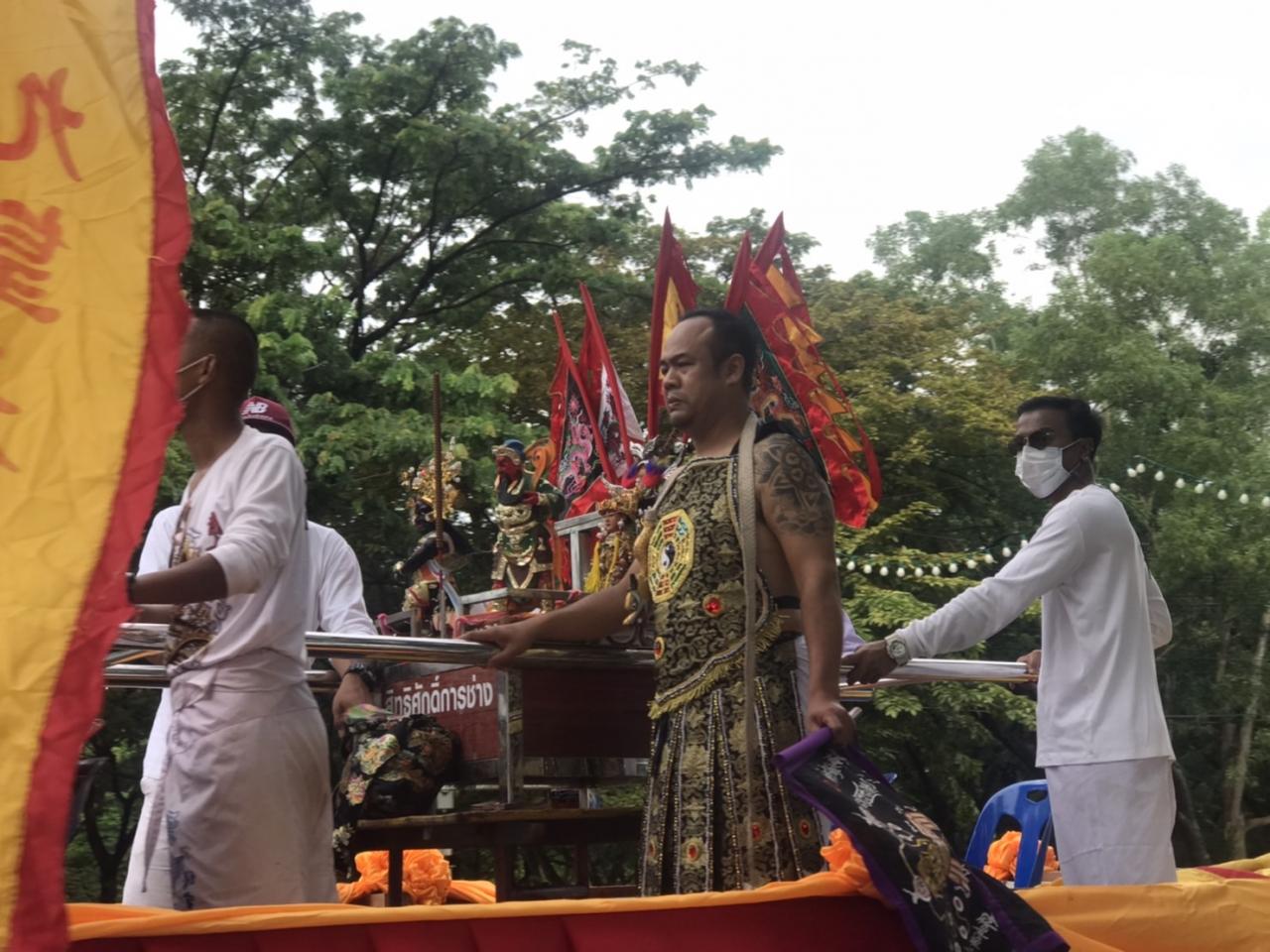 เทศกาลกินเจ ภูเก็ต วันที่ 2 เริ่มประกอบพิธี "อิ้วเก้ง" แห่พระรอบเมืองแบบนิวนอร์มอล ศาลเจ้าฮุนจงอ๊าม จ้อสู่ก้ง โดยปีนี้งดแสดงม้าทรงหวาดเสียว หันมาใช้ขบวนรถยนต์แทน