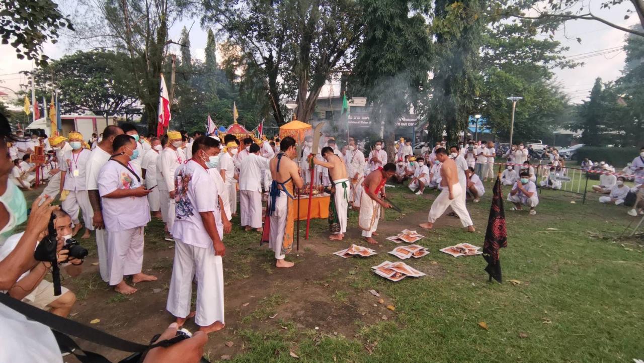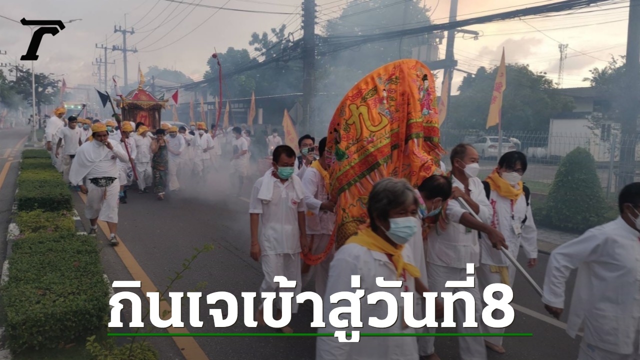 เข้าสู่วันที่ 8 เทศกาลถือศีลกินเจ "ภูเก็ต" เข้มข้น พิธี "อิ้วเก้ง" แห่พระรอบเมืองศาลเจ้าต้นกำเนิด "เจี๊ยะฉ่าย-กินเจ" คึกคัก ประชาชนตั้งโต๊ะขอพรจุดประทัดแพใส่ขบวนพระ เพื่อเป็นการต้อนรับ