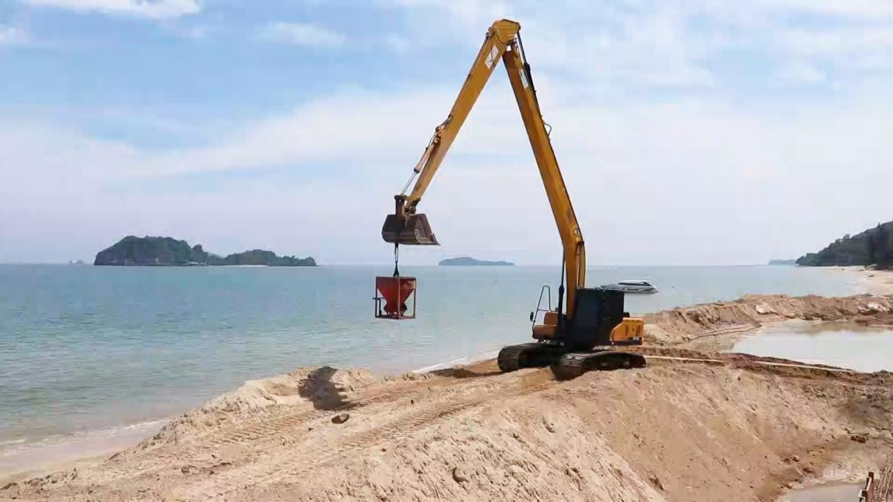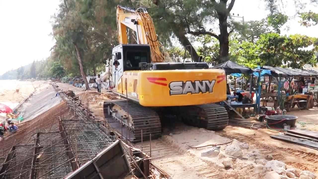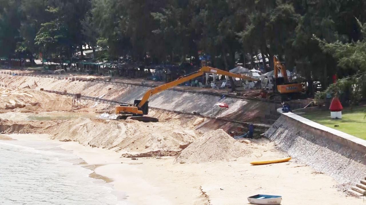 ผู้รับเหมาได้ระดมเครื่องจักรหนักเบาเข้าไประดมการก่อสร้างบนชายหาดตามโครงการฯ จนนักท่องเที่ยวและประชนชนที่ไปพบเห็นต่างวิพากษ์วิจารณ์ว่าเป็นการป้องกันหรือทำลายสิ่งแวดล้อม และกำลังกลายเป็นที่วิพากษ์วิจารณ์ในวงกว้างอยู่ขณะนี้ ซึ่งหากการก่อสร้างแล้วเสร็จหาดทรายรีที่สวยงามจะไม่มีชายหาดให้เห็นและลงไปเดินเที่ยวเล่นอีกต่อไป