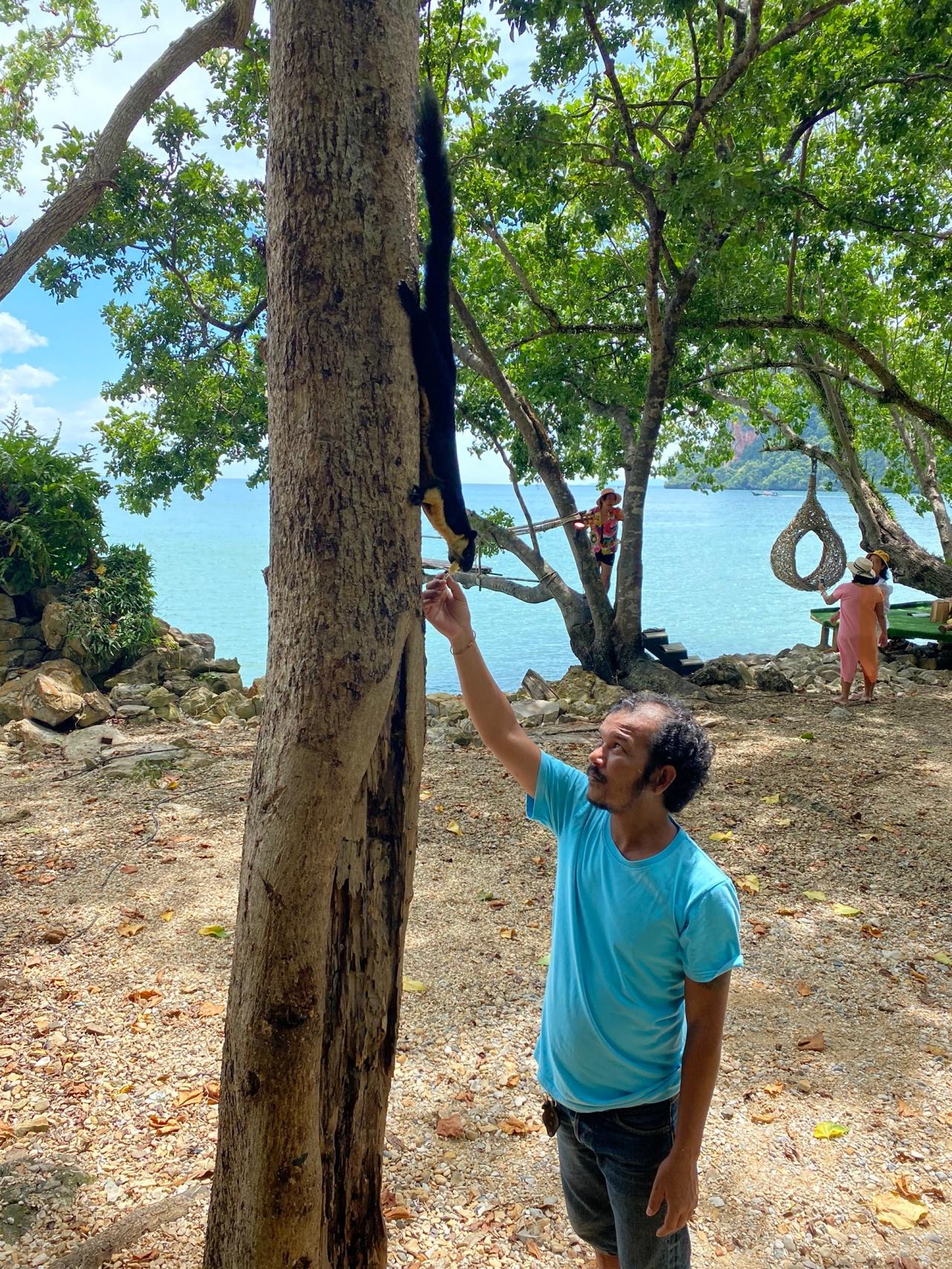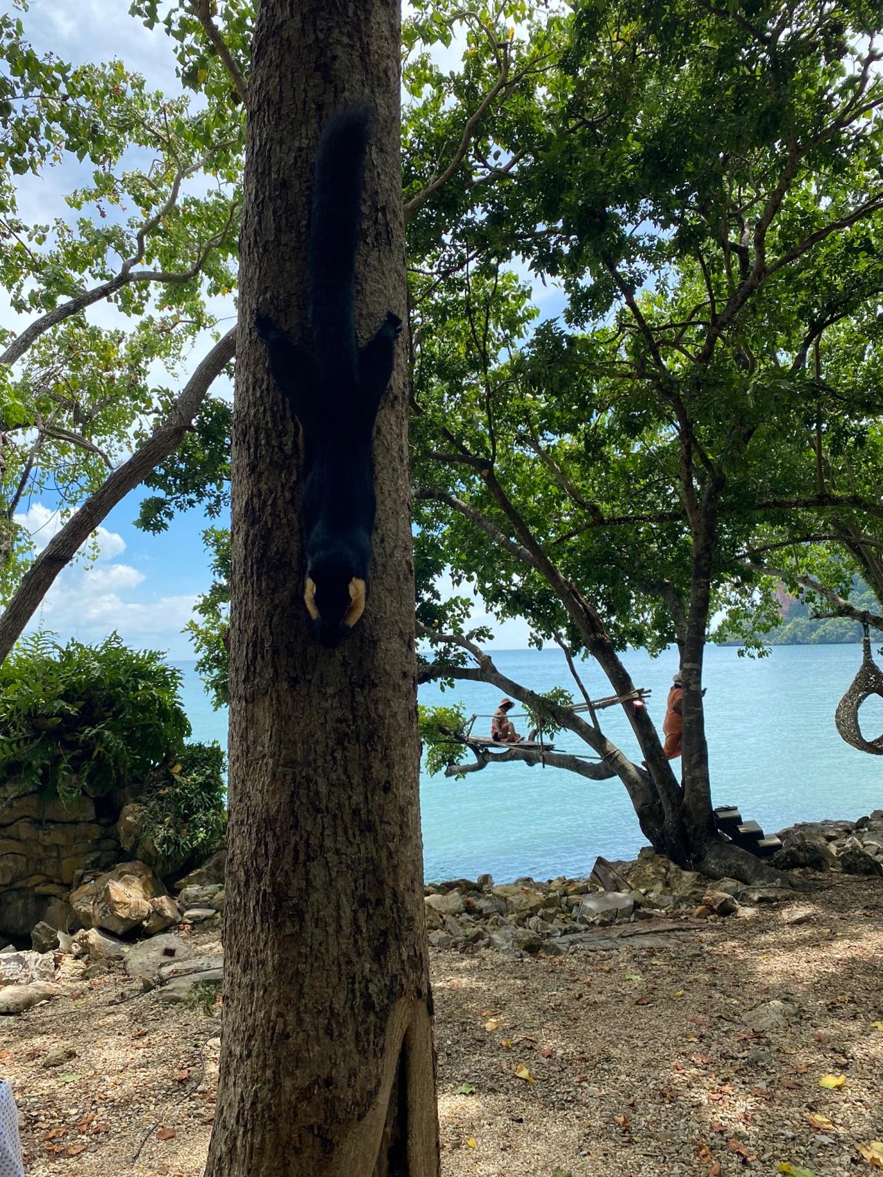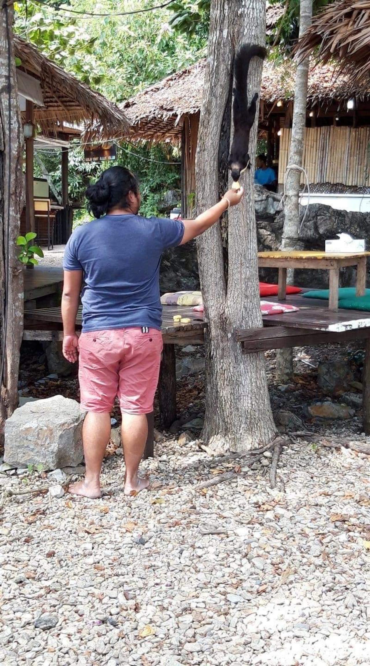 เปิดภาพ "พญากระรอกดำ" หรือ "เสือรอก" ตัวขนาดใหญ่ ดาวเด่นบนอ่าวไร่เลย์ จ.กระบี่ คุ้นเคยนักท่องเที่ยว ไต่ลงมากินอาหารจากมือ