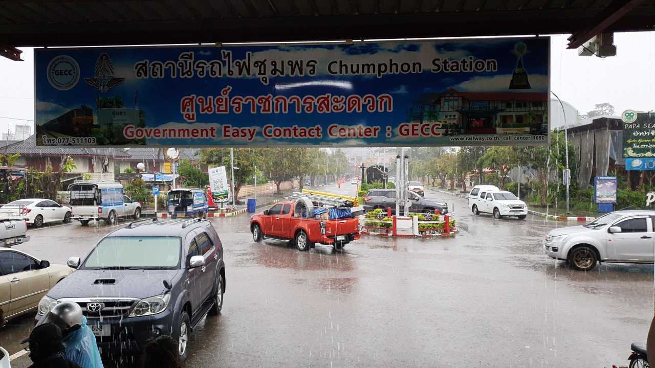 น้ำท่วมชุมพรยังอ่วมหนัก ฝนยังตกกระหน่ำไม่หยุดขยายวงกระทบ 8 อำเภอ ทางรถไฟ ถนนสายหลักเอเชีย 41 คมนาคมเป็นอัมพาตขึ้นล่องภาคใต้ถูกตัดขาดต้องใช้ถนนเพชรเกษมไปทางระนองแทน ส่วน รฟท.แจ้งกระทบ 8 ขบวนรถ
