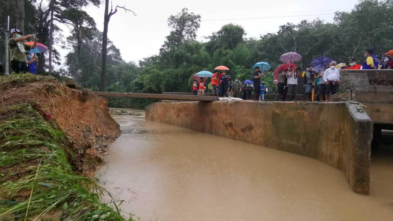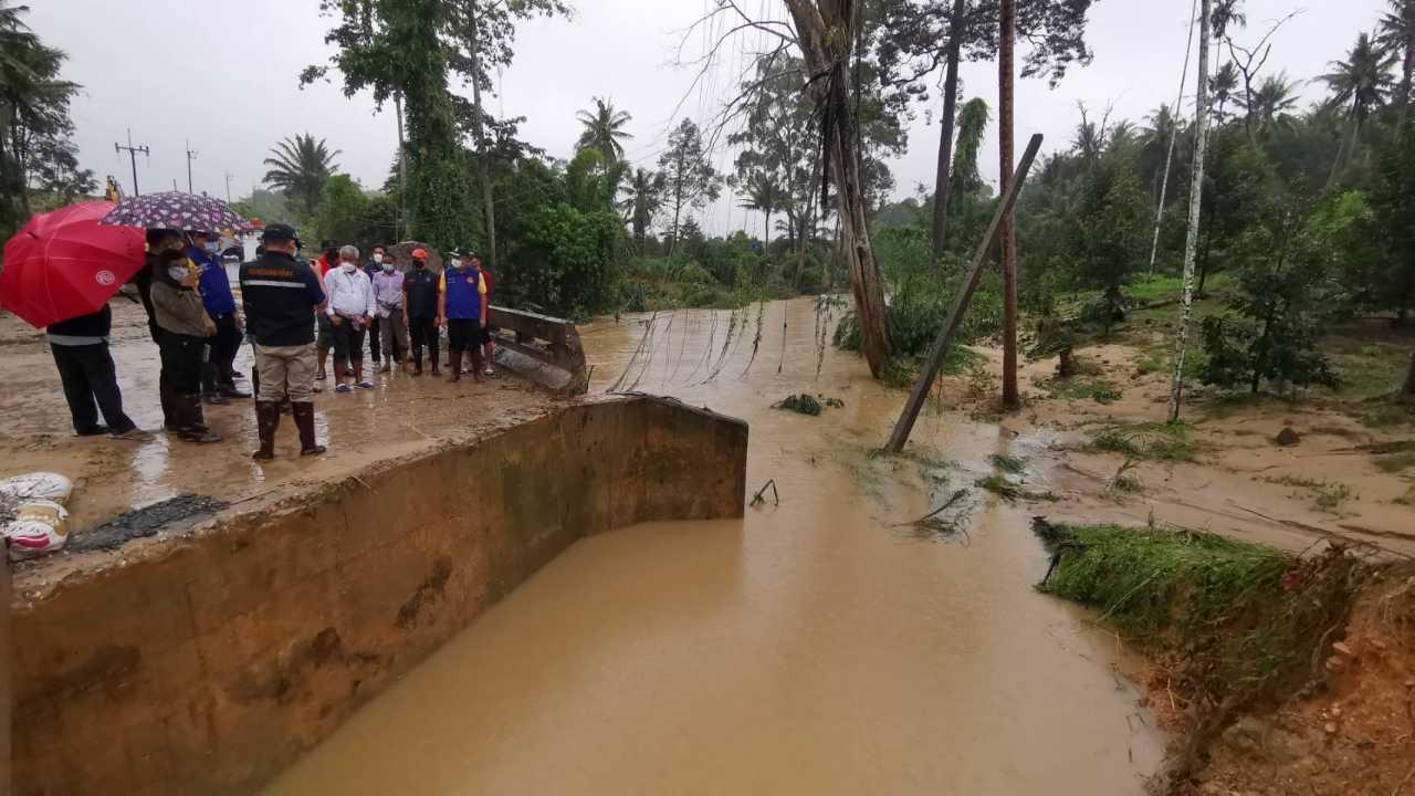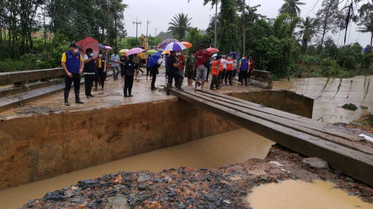 สืบเนื่องจากฝนตกหนักตลอด 24 ชั่วโมง พร้อมด้วยน้ำทะเลหนุนสูงจึงทำให้น้ำจำนวนมากเข้าท่วมบริเวณในพื้นที่ดังกล่าว อีกทั้งพื้นที่สัญจรไปมาอย่างสะพานหมู่ 13 ต.คันธุลี ซอยยูงทอง 1 บ้านช่องยูงทอง ที่ใช้ในการเชื่อมต่อไปยัง หมู่ที่ 6 บ้านสัมปัง ต.คลองพา กว้าง 4 เมตร ความยาวประมาณ 25 เมตร คอสะพานได้ชำรุดเสียหาย เนื่องจากน้ำกัดเซาะคอสะพานขาด ประมาณ 3 เมตร ทำให้มีประชาชนได้รับความเดือดร้อน ประมาณ 400 หลังคาเรือน พร้อมเตือนให้ประชาชนใช้เส้นทางเพื่อหลีกเลี่ยงเส้นทางไปสู่อำเภอละแม จังหวัดชุมพร