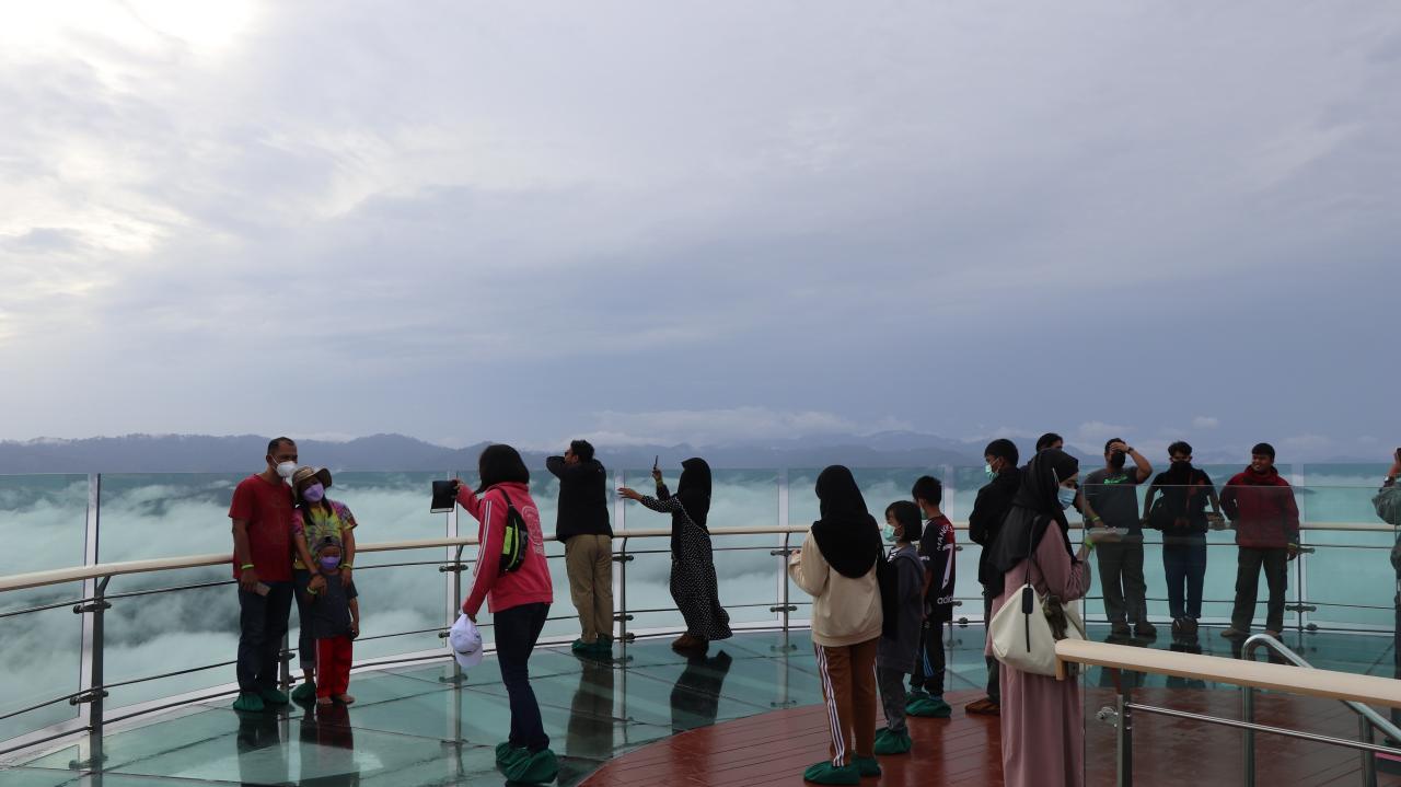เมื่อวันที่ 10 ธ.ค.64 ที่สกายวอล์ก ต.อัยเยอร์เวง อ.เบตง จ.ยะลา นักท่องเที่ยวทั้งคนในจังหวัด และนอกพื้นที่ ต่างเดินทางมาท่องเที่ยวที่สกายวอล์ก เพื่อชมความงามของทะเลหมอกและพระอาทิตย์ขึ้นยามเช้า หลังสกายวอล์กเปิดให้บริการแล้วตั้งแต่วันที่ 1 ธ.ค. ที่ผ่านมา จากที่ปิดไปนานถึง 8 เดือน เนื่องจากสถานการณ์การแพร่ระบาดของไวรัสโควิด-19