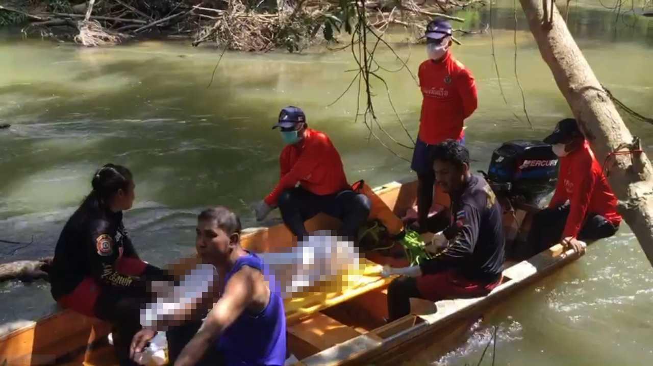 จนท.กู้ภัย จ.สตูล ชุดค้นหาพบร่างน้องปลื้ม วัย 9 ขวบที่เล่นสไลเดอร์เก่าบริเวณสวนน้ำเก่าในสวนยางพารา ม.10 ต.น้ำผุด อ.ละงู แล้วหายไปตั้งแต่วันที่ 4 หลังลอยมาติดกิ่งไม้นำส่งพ่อแม่ทำพิธีทางศาสนา