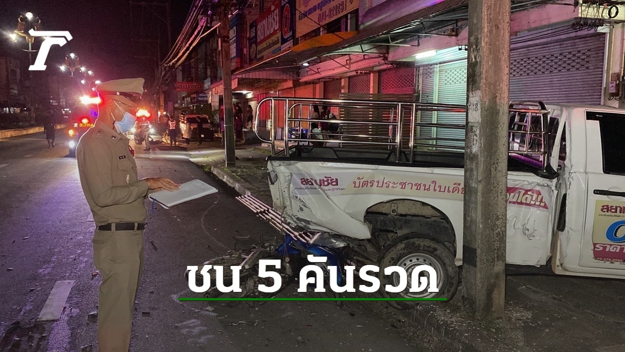ชายวัย 51 ปี ชาวจังหวัดตรัง เมาขับรถกลับจากงานเลี้ยง เข้ามาหาที่พักในตัวเมืองพัทลุง ชน 5 คันรวด ทำให้มีผู้เสียชีวิต 1 ศพ บาดเจ็บอีก 1 ราย
