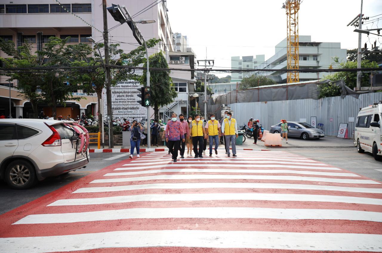 เทศบาลนครภูเก็ตทาสีทางม้าลายหน้า รพ.วชิระภูเก็ต เน้นแดง-ขาว เด่นชัดป้องกันอุบัติเหตุ และยังกวดขันกฎจราจร หวั่นจะเกิดเหตุเศร้าสูญเสียบุคลากรทางการแพทย์ที่มีค่าแบบคุณหมอกระต่าย