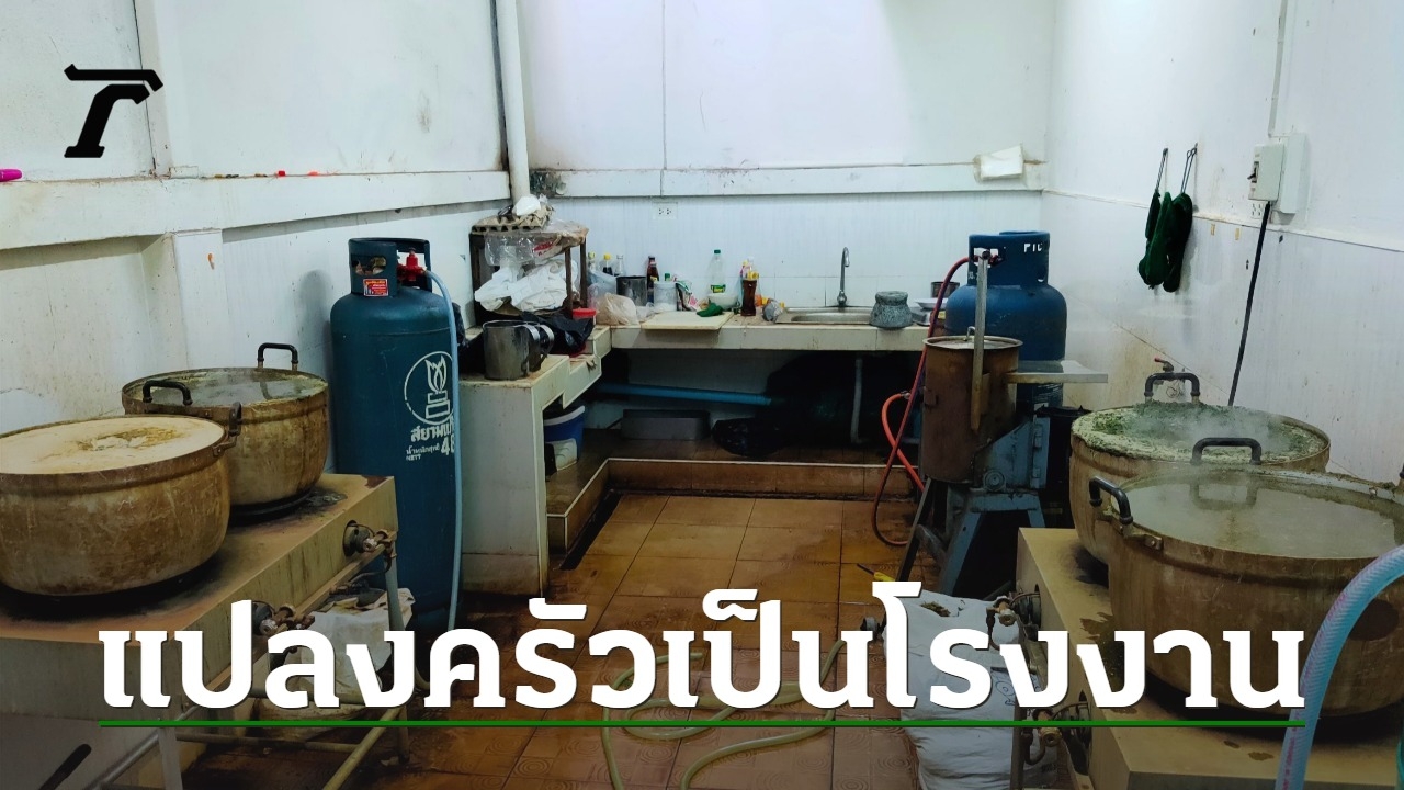 จนท.บุกทลายแหล่งต้ม-จำหน่าย "น้ำท่อม" กลางเมืองหาดใหญ่ แปลงสภาพห้องครัวในบ้านเป็นโรงงานต้มขนาดย่อม ยึดใบกระท่อมสด-อุปกรณ์ผลิตครบชุด รวบตัวคนในบ้าน 9 คน สอบสวนอ้างต้มกินเอง-แจกคนงาน ส่วนอุปกรณ์ที่ยึดได้ อ้างเคยเปิดร้านอาหารมาก่อน