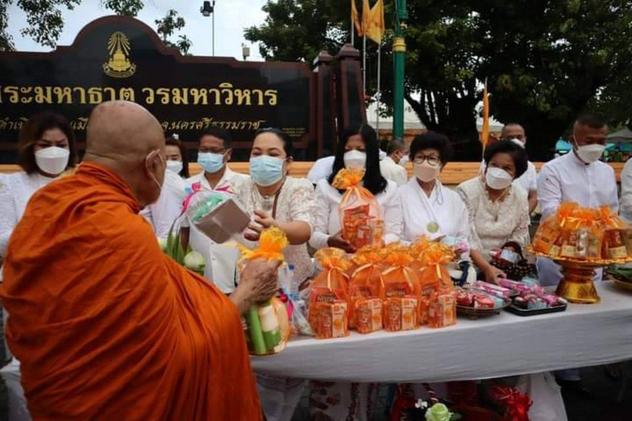 โดยมีพระราชวิสุทธิกวี เจ้าคณะภาค 16 (ธรรมยุต)/ผู้ช่วยเจ้าอาวาสวัดพระมหาธาตุ วรมหาวิหาร เป็นประธานสงฆ์/ได้กล่าวสัมโมทนียกถาให้พรแก่พุทธศาสนิกชนที่ร่วมพิธี ณ บริเวณถนนราชดำเนินหน้าวัดพระมหาธาตุ วรมหาวิหาร ภายใต้มาตรการป้องกันการแพร่ระบาดของโรคโควิด-19