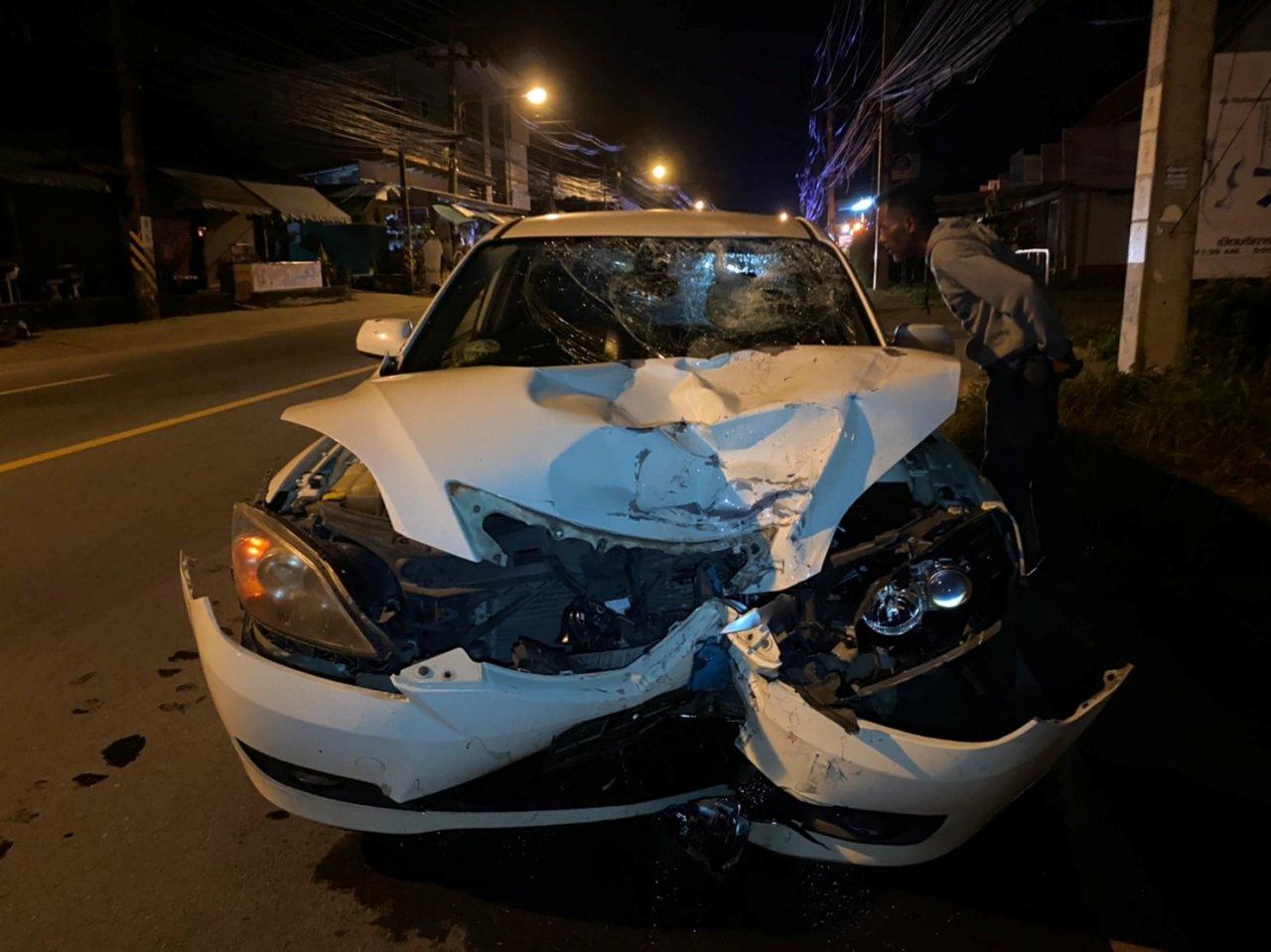 ห่างจากรถจักรยานยนต์ประมาณ 150 เมตร พบรถเก๋งมาสด้า 3 สีขาว ทะบียน กค-7160 พังงา สภาพรถเก๋งด้านหน้า กระจกแตก กันชนฝากระโปรงยุบ ในรถถุงลมนิรภัยระเบิดทั้ง 2 ข้าง และอ่างน้ำมันเครื่องแตก น้ำมันเครื่องกระจายเต็มพื้นถนน และ พบนายคมกริช วงศ์เกษ อายุ 48 ปี ชาวบ้านหมู่ 4 ตำบลเกาะคอเขา อำเภอตะกั่วป่า จังหวัดพังงา ยืนรอมอบตัวกับเจ้าหน้าที่ตำรวจ