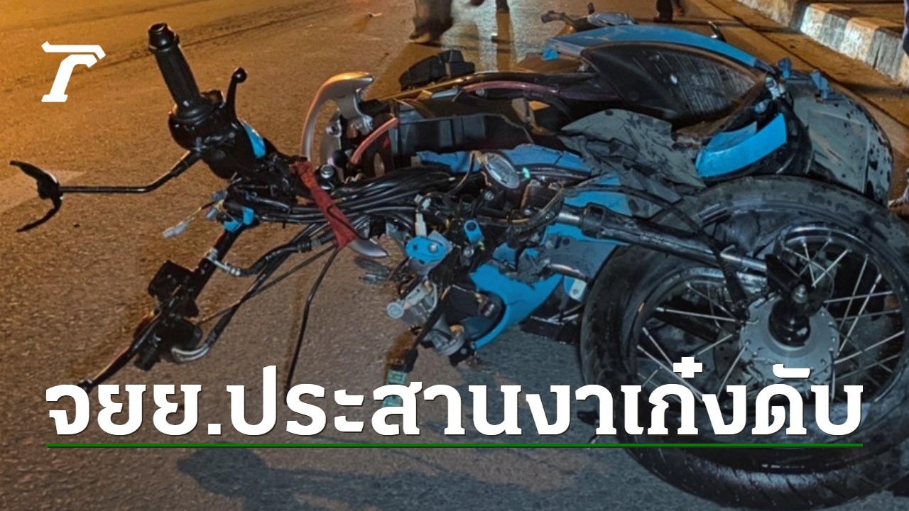 หนุ่มใหญ่วัย 56 ปี ซิ่ง จยย.จะแซงรถคันหน้า แต่ไม่พ้นประสานงารถเก๋งที่ขับสวนทางมาบนถนนทวีราษฎร์ภักดี อ.เกาะสมุย อย่างแรงจนหน้ารถเก๋งยับลาก จยย.ไปราว 200 เมตร ดับคาที่สภาพศพแหลกทั้งร่าง