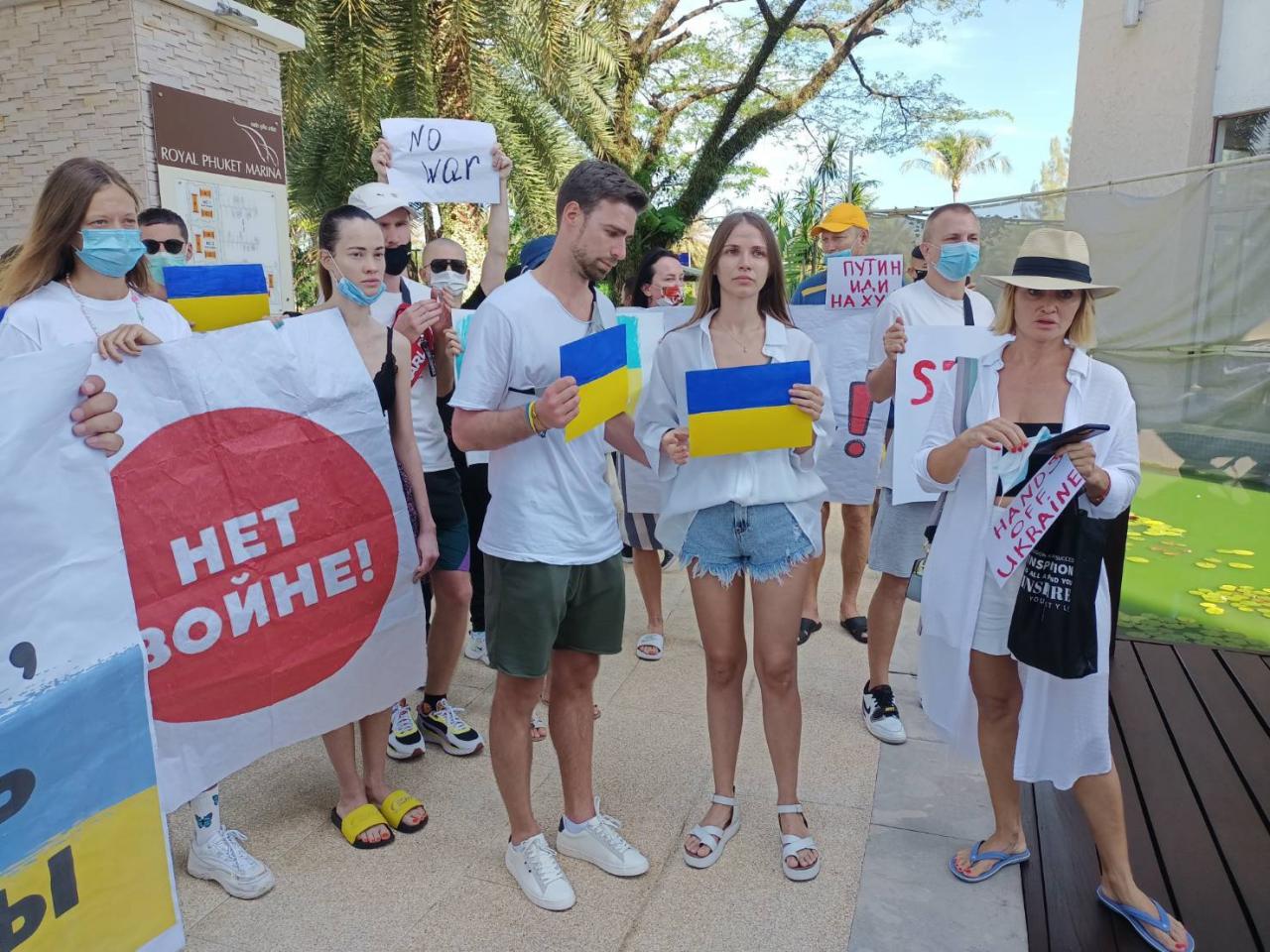 จากนั้นได้มีนักท่องเที่ยวอีกกลุ่มได้เคลื่อนตัวไปยังสำนักงานสถานกงสุลรัสเซีย ชั่วคราว ประจำจังหวัดภูเก็ต และได้จัดทำป้ายเขียนข้อความลงบนกระดาษที่เตรียมมา และทำกิจกรรม พร้อมเรียกร้องให้ยุติสงครามในยูเครน และเรียกร้องให้เกิดเสรีภาพ พร้อมร้องเพลงชาติยูเครน ซึ่งส่วนใหญ่เป็นชาวรัสเซีย และยูเครนที่ร่วมกิจกรรม ประมาณ 30 นาทีจึงได้ยุติกิจกรรม และแยกย้ายเดินทางกลับ