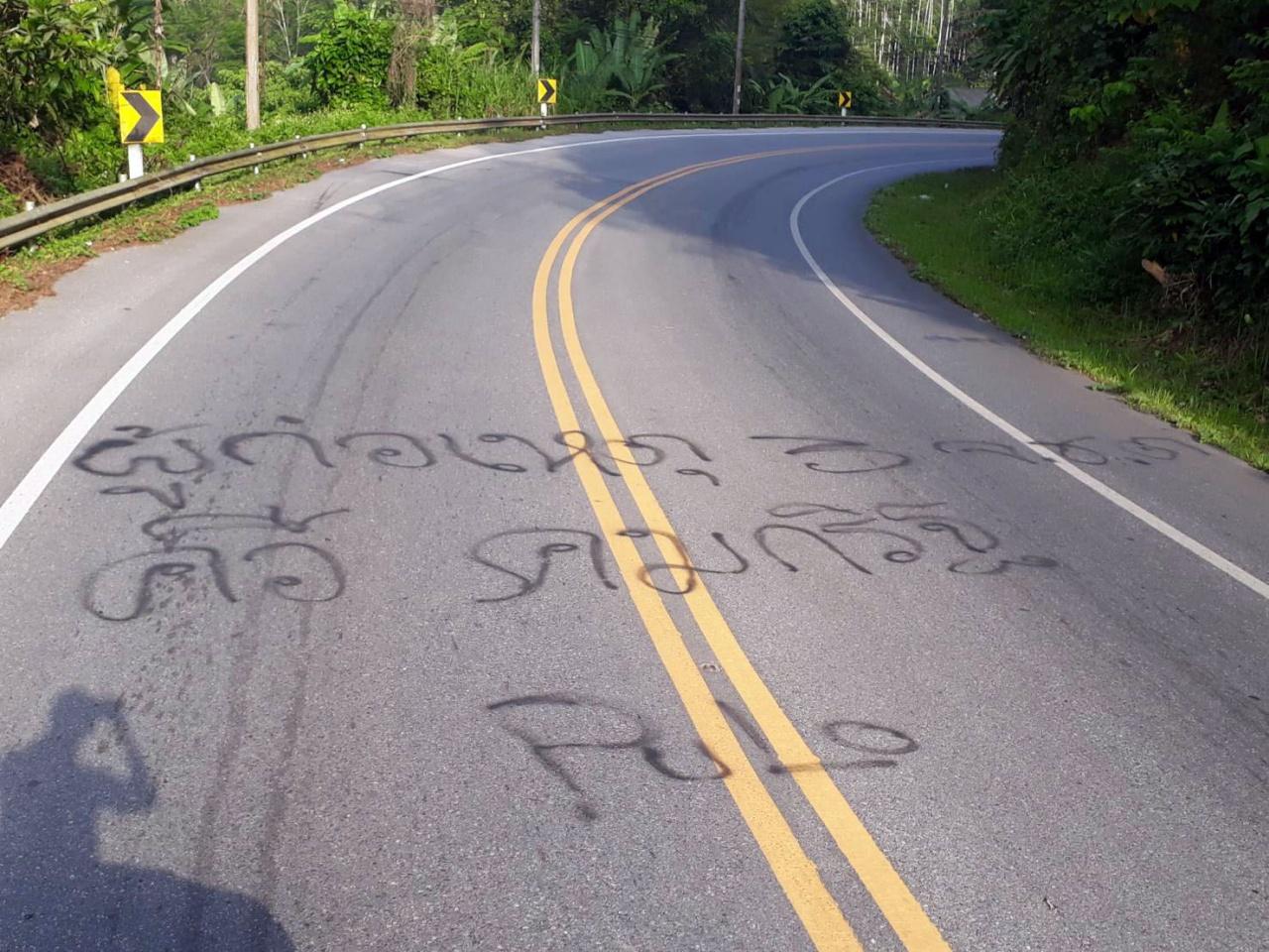 เวลา 07.00 น.วันที่ 13 มี.ค. พ.ต.อ.สายูตี กาเต๊ะ ผกก.สภ.บันนังสตา จ.ยะลา รับแจ้งจาก ฉก.ทพ.30 ลาดตระเวนตรวจพบมีคนร้ายแขวนป้ายผ้า และพ่นสีสเปรย์บนพื้นถนน ริมทางหลวงสาย 410 (ยะลา-เบตง) จำนวน 4 จุด ได้แก่ บริเวณบ้านตะโละดือลง หมู่ 4 และบ้านทำนบ หมู่ 5 ต.ตาเนาะปูเต๊ะ ฝั่งตรงข้ามโรงเลื่อยไม้บ้านป่าหวังนอก หมู่ 11 ต.บันนังสตา และบ้านตังกะเด็ง หมู่ 5 ต.ถ้ำทะลุ จึงพร้อมด้วย จ.ส.อ.อดิศักดิ์ ทับเที่ยง ปลัดป้องกันอำเภอบันนังสตา สนธิกำลัง 3 ฝ่ายไปตรวจสอบ
